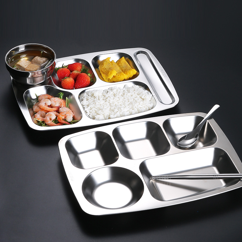 食品グレード304ステンレス製仕切り付き食堂学生用ファストフードプレート、軽奢な業務用食器トレイ