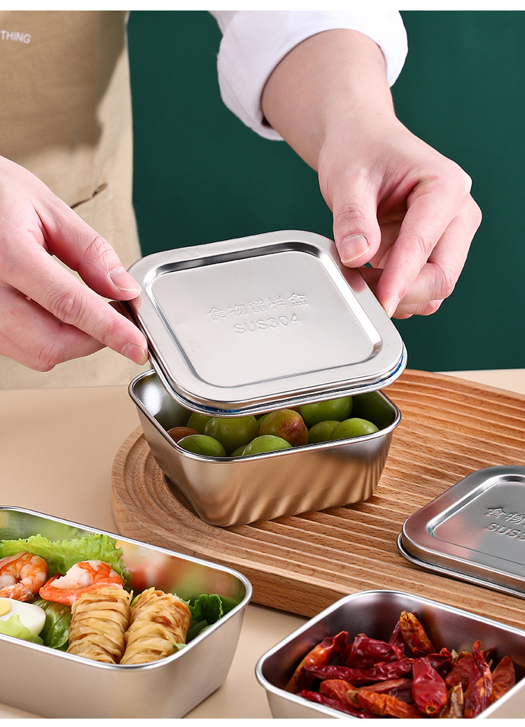 食品グレードのステンレス製鮮度保持ボックス、密閉蓋付き、業務用・家庭用弁当箱、大容量収納ボックス、食品用弁当箱