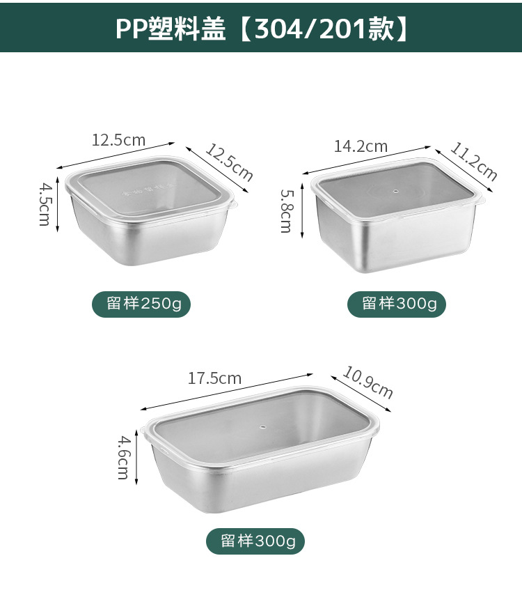 304不锈钢留样盒幼儿园食堂食物食品留样专用盒分装盒取样盒带盖