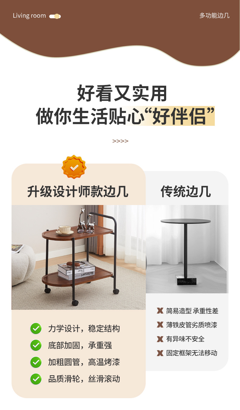 軽くて豪華な取り外し可能なコーヒーテーブルソファサイドキャビネット