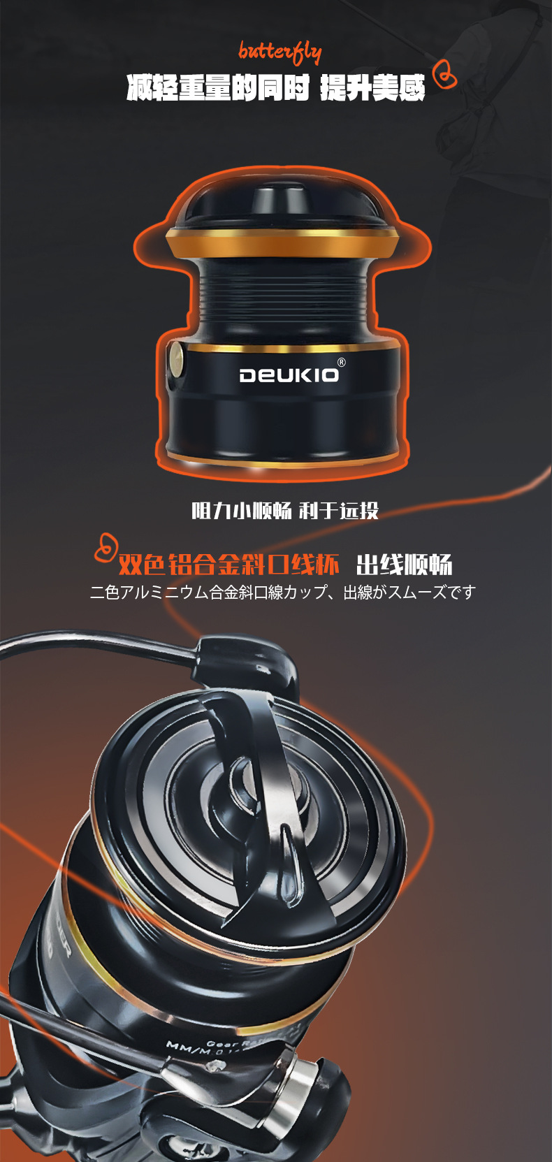 5.双色铝合金斜口线杯出线顺畅;阻力小顺畅 利于远投。