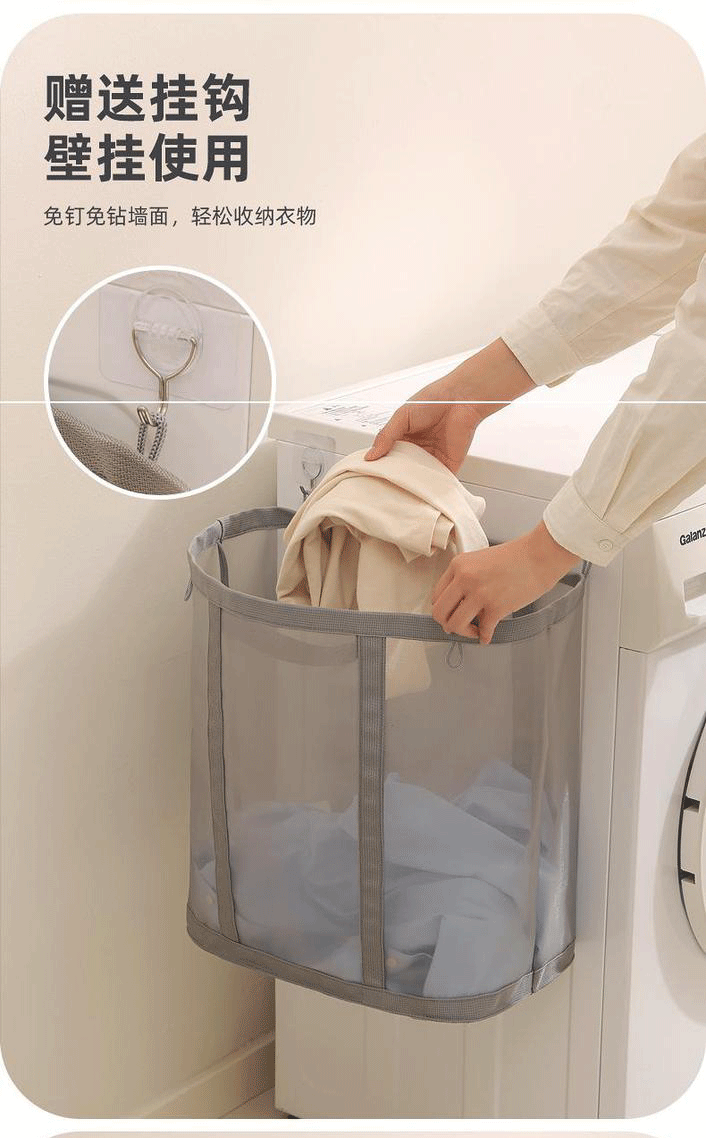 家庭用バスルーム浴室用汚れた衣類バスケット、メッシュガーゼの汚れた衣類バスケット、ランドリーバスケット、汚れた衣類収納バスケット、壁掛け式汚れた衣類バスケット