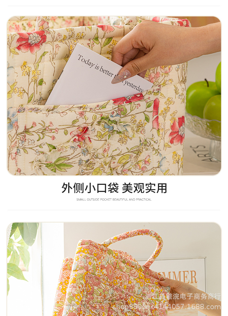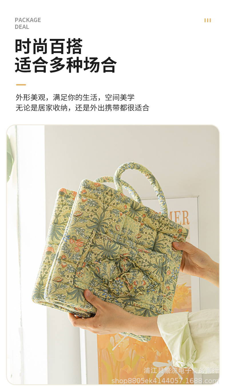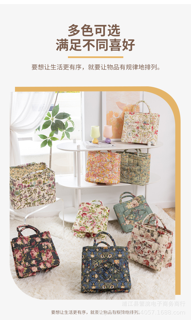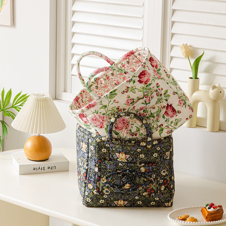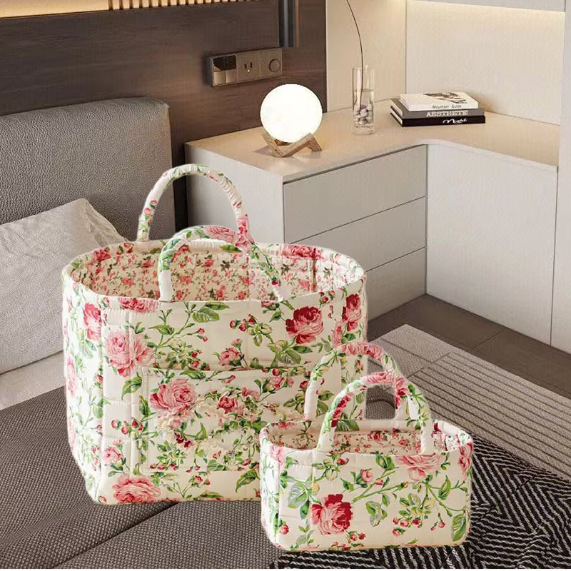 日韓風クロスボーダー スポンジ収納バッグ 衣類・おもちゃ用 ポータブル布製バッグ フレッシュな花柄 洗濯機洗い可能 雑貨入れ