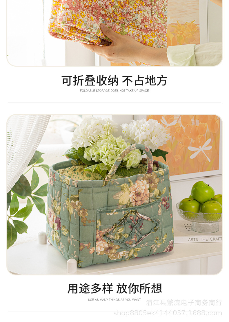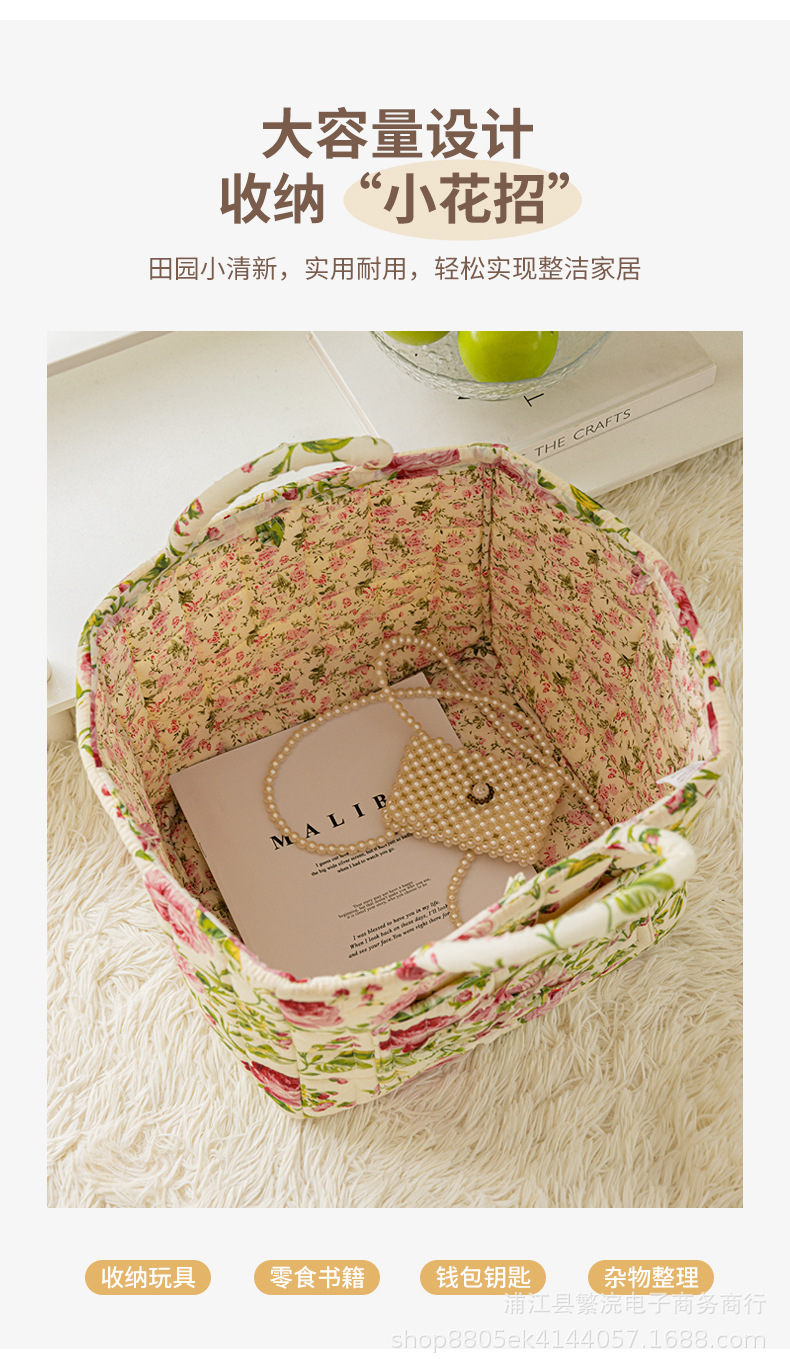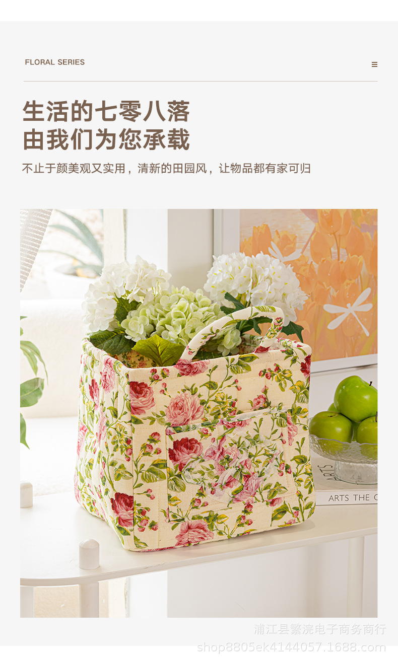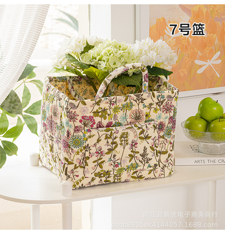 新款外贸家居布艺碎花收纳篮便携内衣杂物整理筐收纳筐加厚可折叠