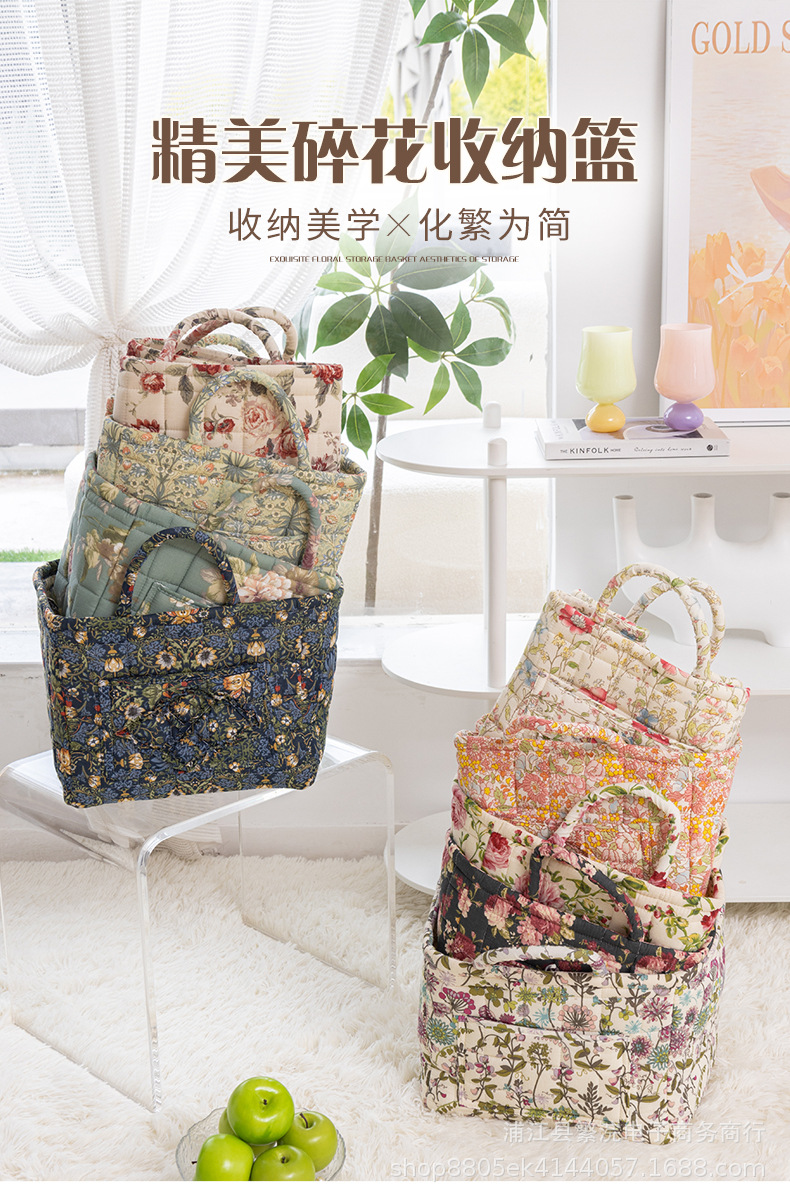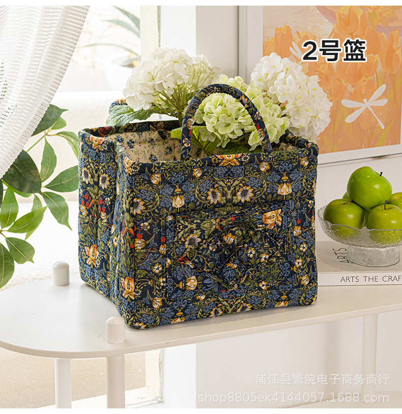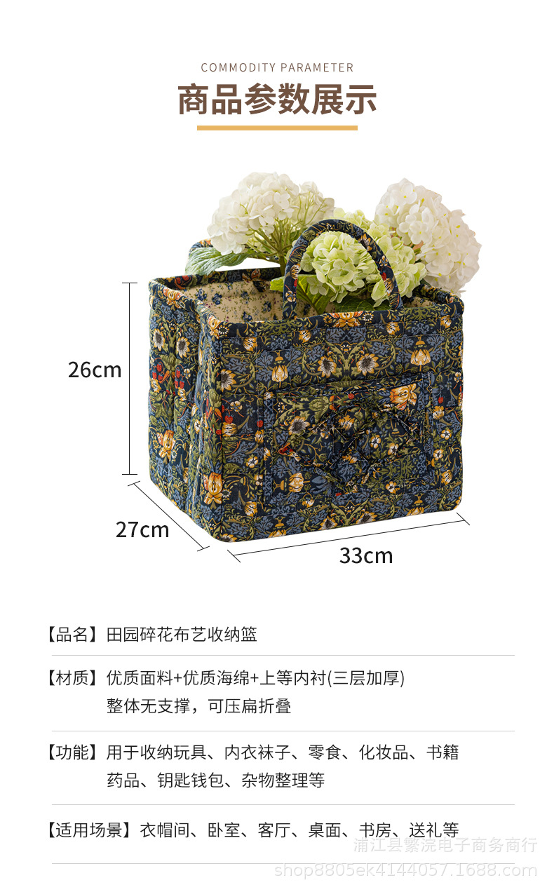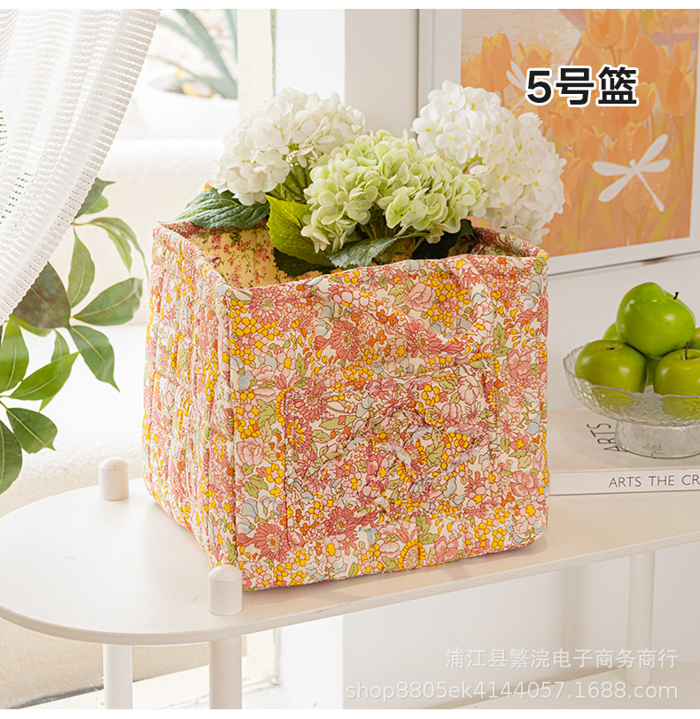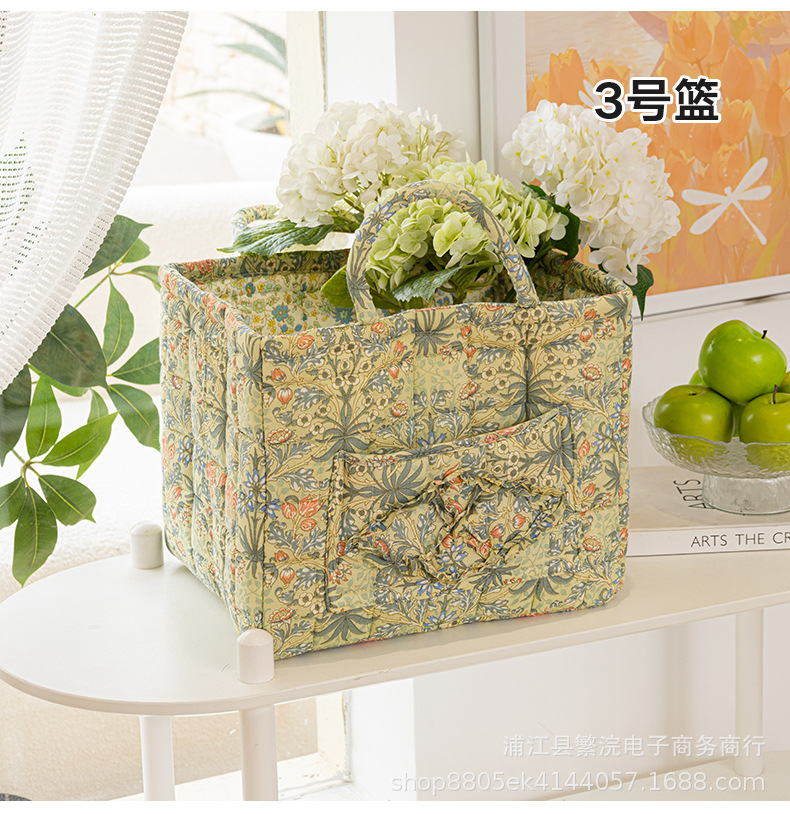新款外贸家居布艺碎花收纳篮便携内衣杂物整理筐收纳筐加厚可折叠