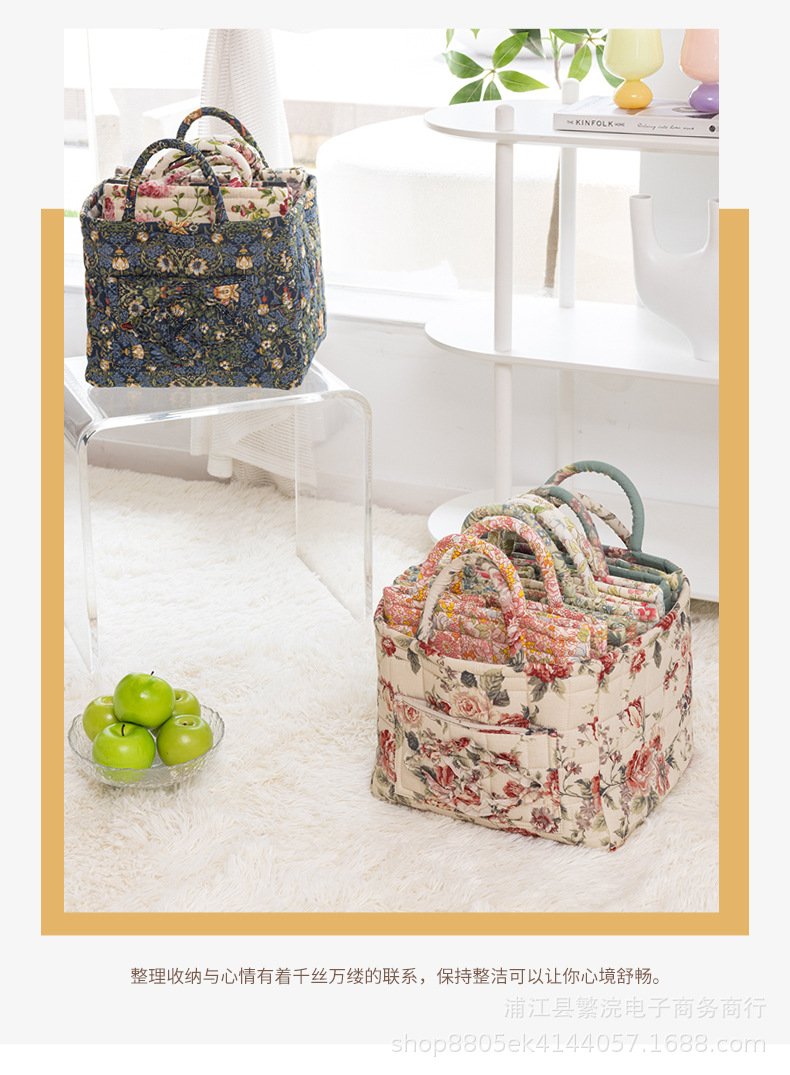 跨境日韩海绵收纳衣物便玩具手提包布艺清新碎花便携可机洗杂物筐