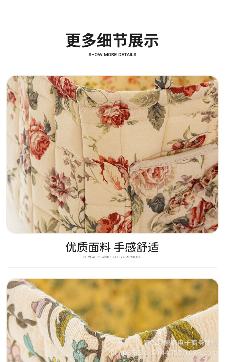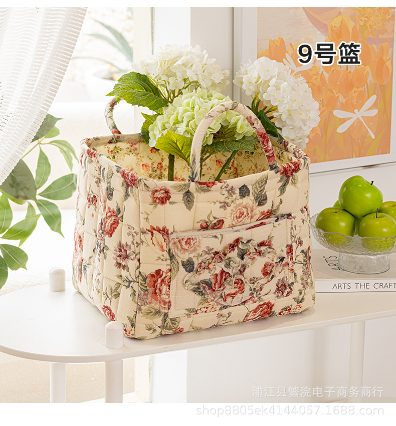 外国貿易用クロスボーダーコットン収納バスケット、花柄の田園風、下着、雑貨、書籍用、持ち運び可能な整理かご、洗濯機で洗える、大容量