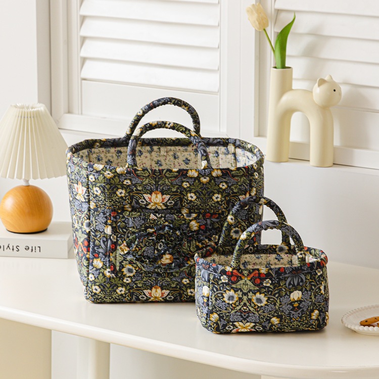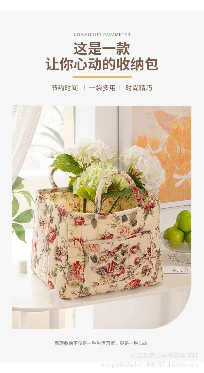 跨境直供外贸出口日式田园风居家布艺杂物化妆品分类收纳筐可手提