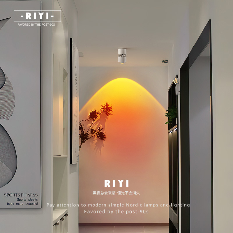 嵌入式日落灯夕阳红氛围感玄关日不落明装射灯过道吸顶落日氛围灯