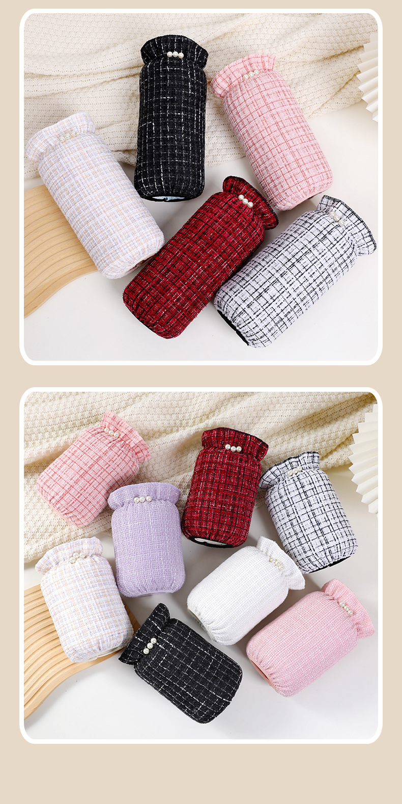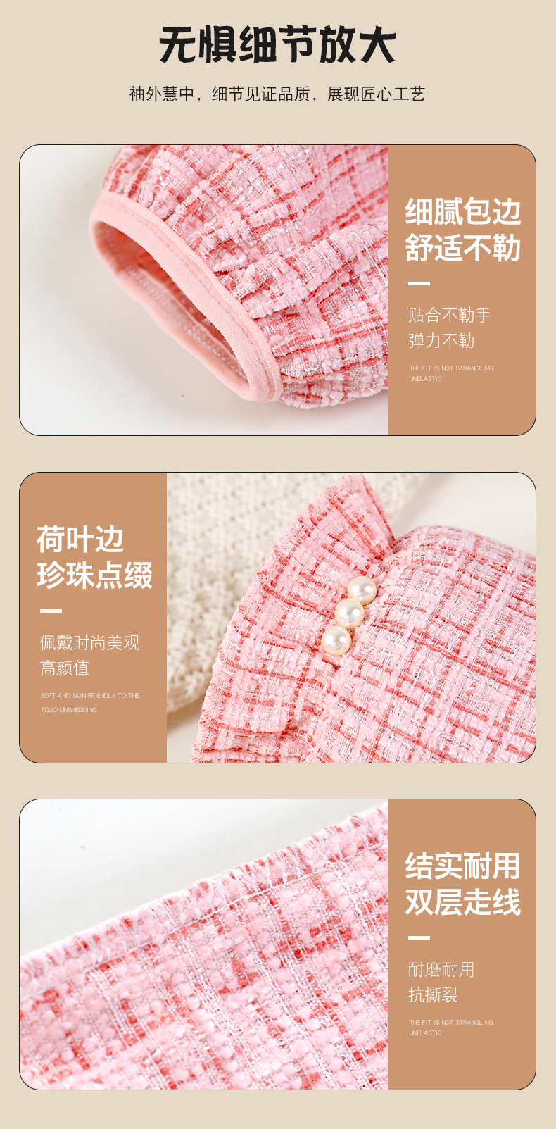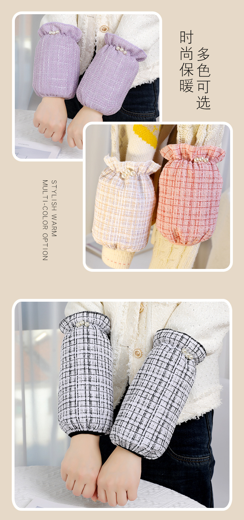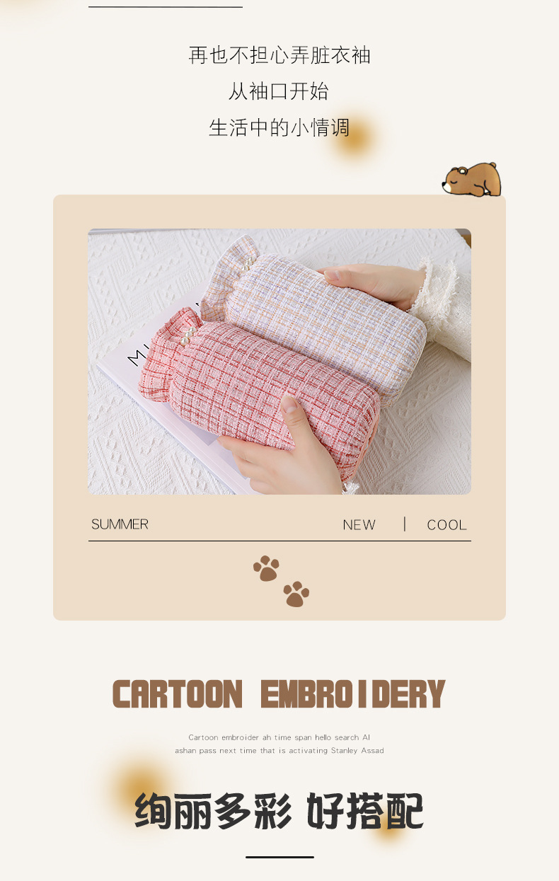 真珠の袖のカバーの冬の短いタイプの格子の小さい香ばしい風の防汚の袖はダウンジャケットの学生の袖の汚れに耐える袖を大きくします。