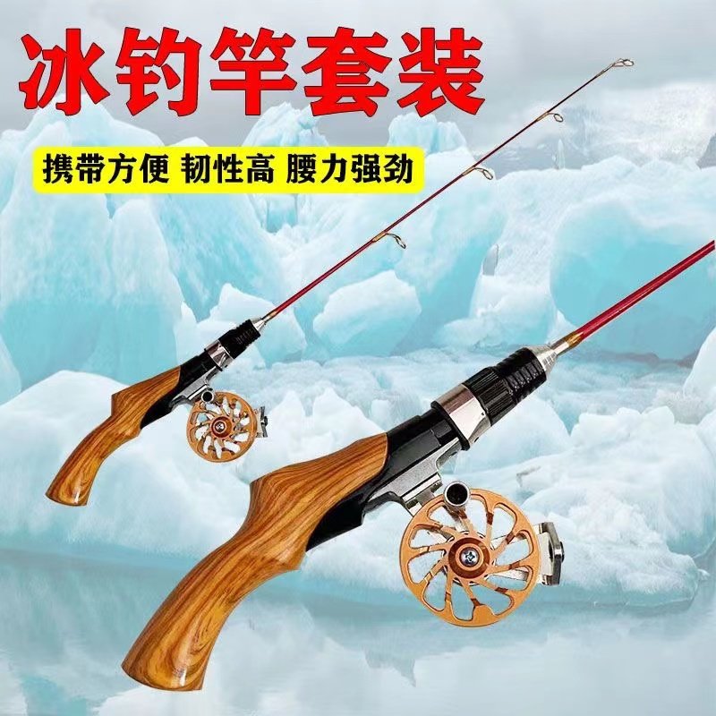 アイス釣竿セットのハンドルとアイス釣竿セットの超短ミニ釣竿弁竿冬釣り携帯釣竿小海竿