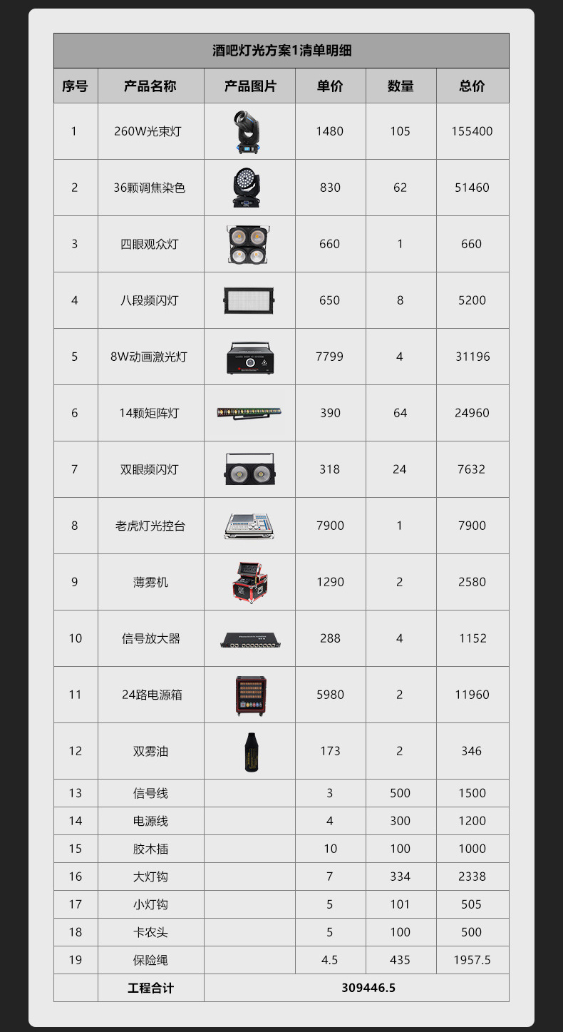捷創バー照明設計案照明設備セット照明案工事ヘッドランプのビームランプセット