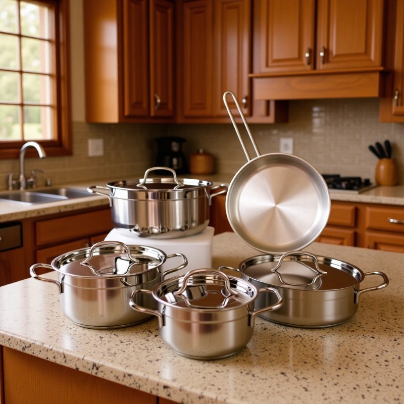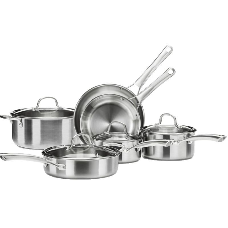 国境を越えて人気の高いステンレス製厚底五層構造耐熱性セット、スープ鍋、フライパン、調理器具、キッチン9点セット卸売