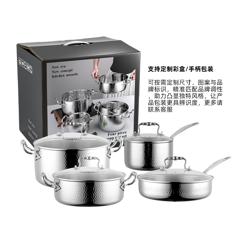 外贸款316不锈钢套装锅具不粘锅无涂层汤锅奶锅煎锅厨房实用礼品