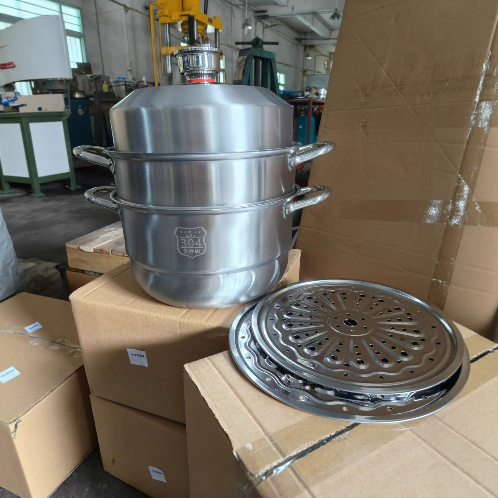 送料無料 304認証 新型タイマー付き蒸し器 厚手ステンレス製 健康的な家庭用三層蒸し器 電磁調理器対応