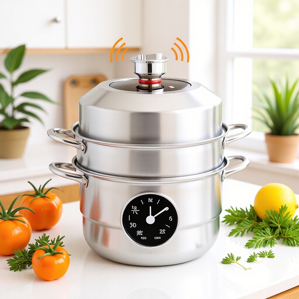 食品グレードのステンレス製タイマー付き蒸し器、三層蒸し器、電磁調理器、ガスコンロ対応、魚蒸し用多層蒸し器デザイン