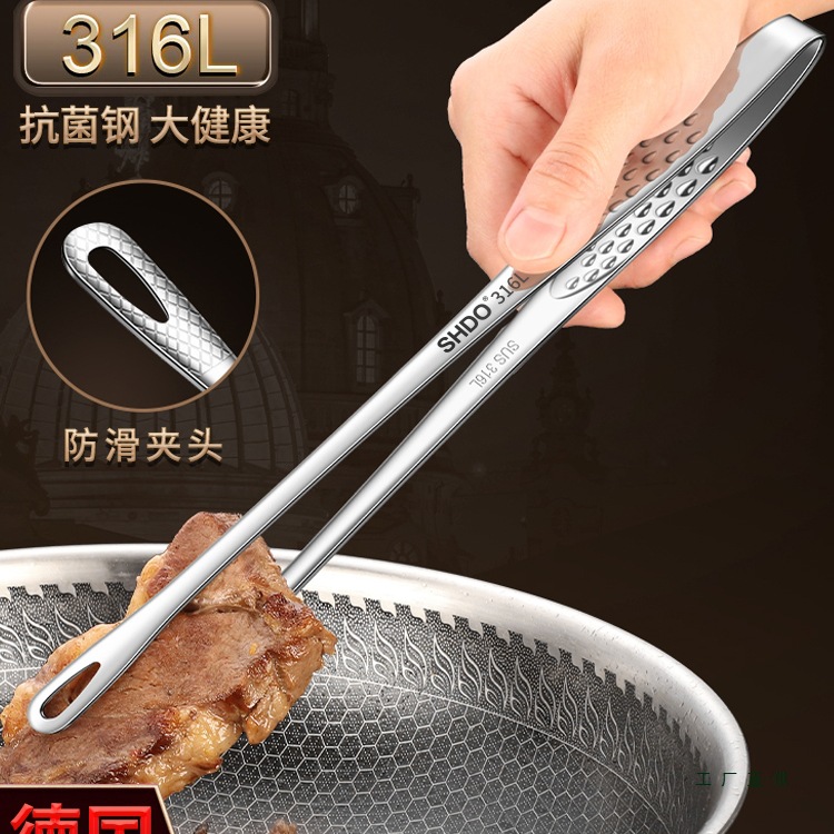 特厚不锈钢316食品夹子厨房食物烧烤加厚面包家用牛排烘焙烤肉