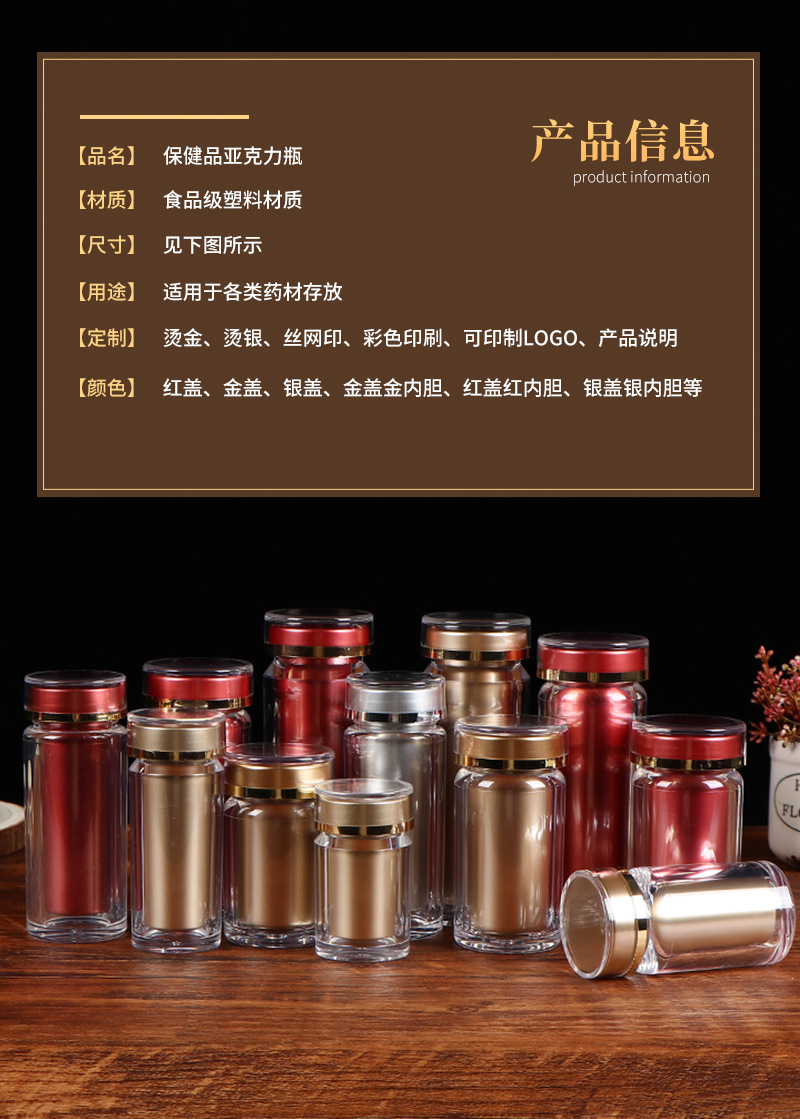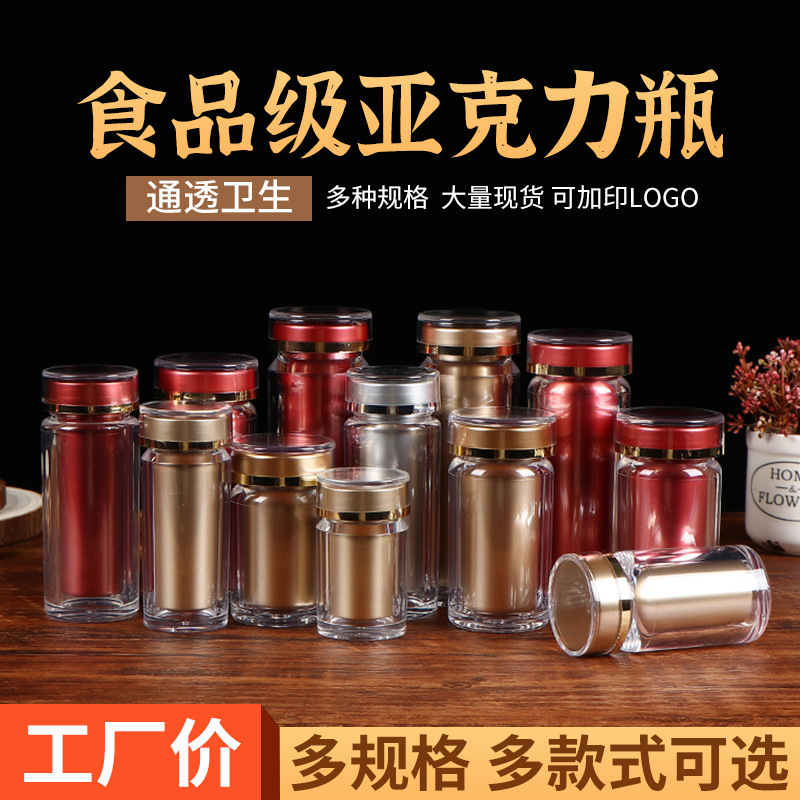 卸売り二重アクリルカプセル瓶チベット紅花滋補品健康食品小薬瓶アクリル避光瓶
