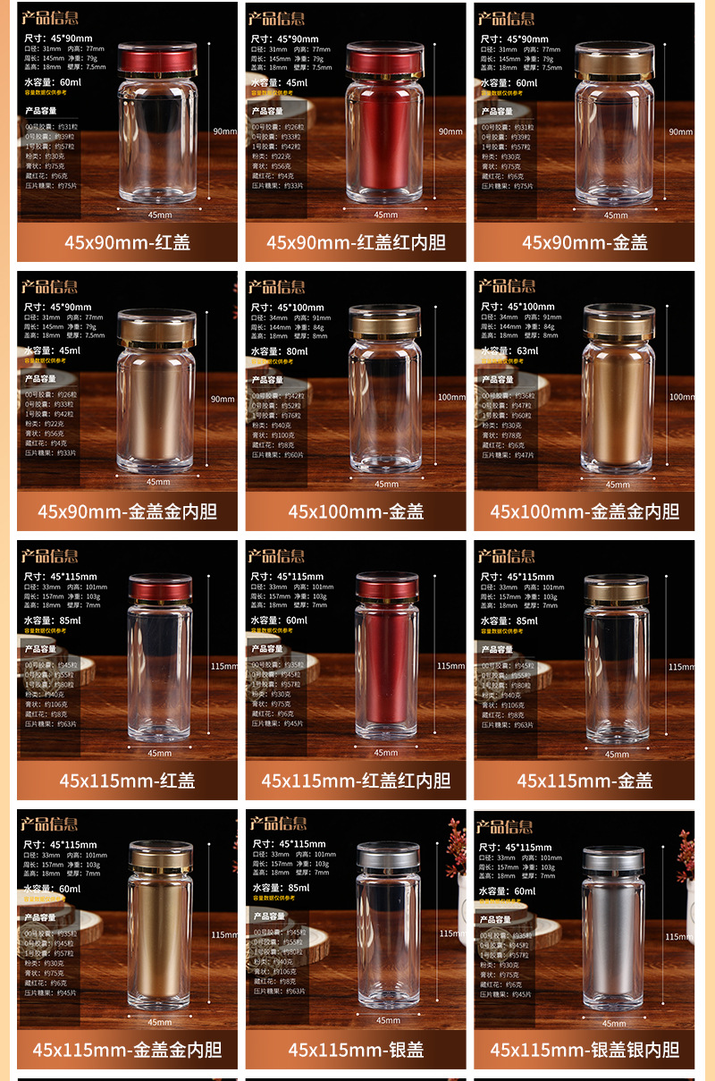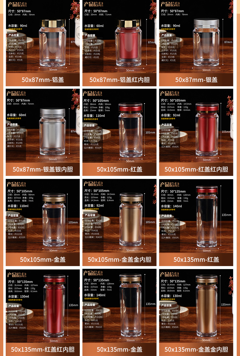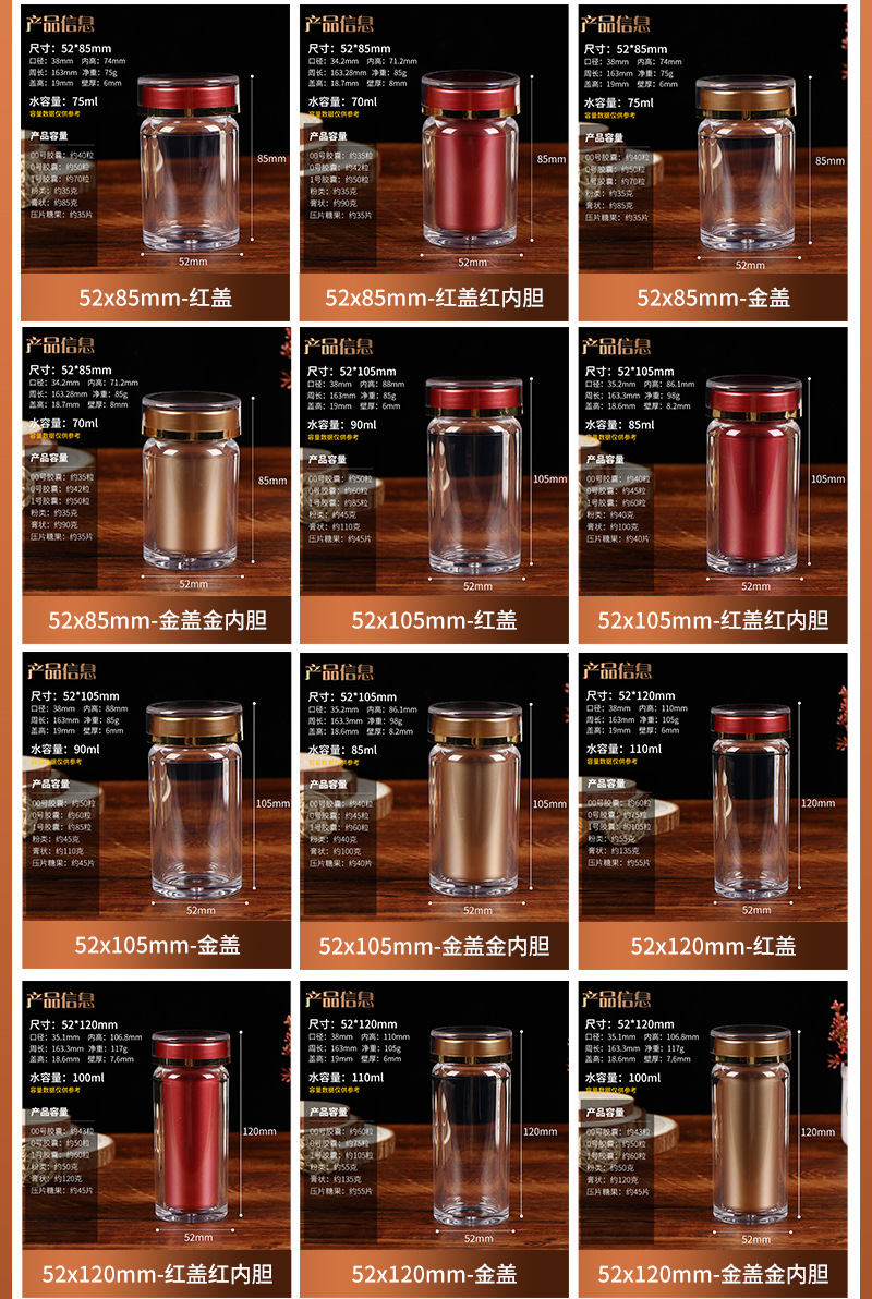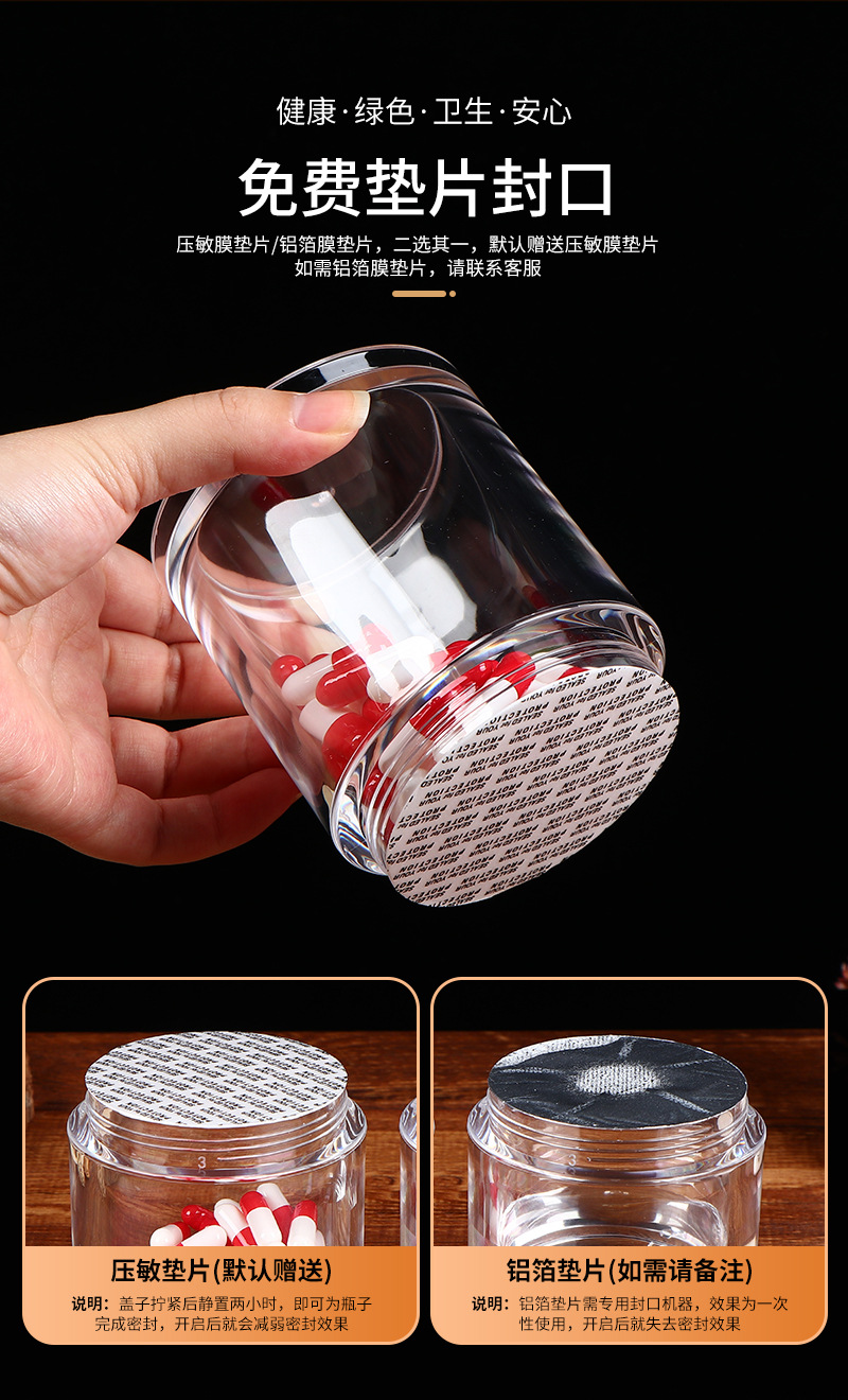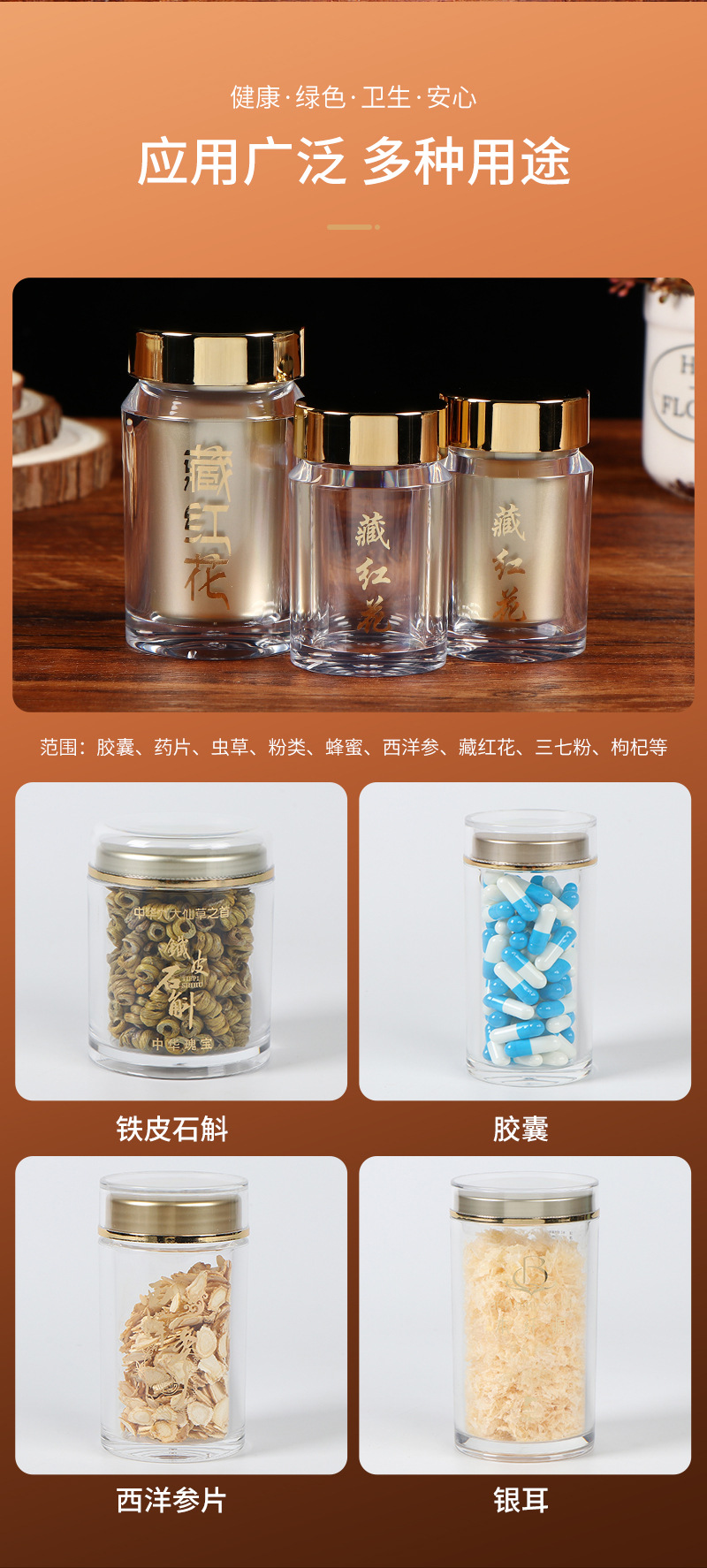 金蓋透明密封防湿カプセル瓶プラスチックアクリル缶粉末生薬銀耳燕窩中薬瓶