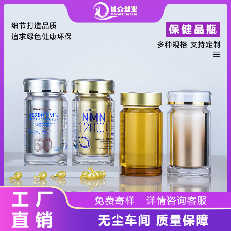 高档塑料保健品瓶 亚克力瓶子 包材 小药瓶空瓶双层盖透明 胶囊瓶