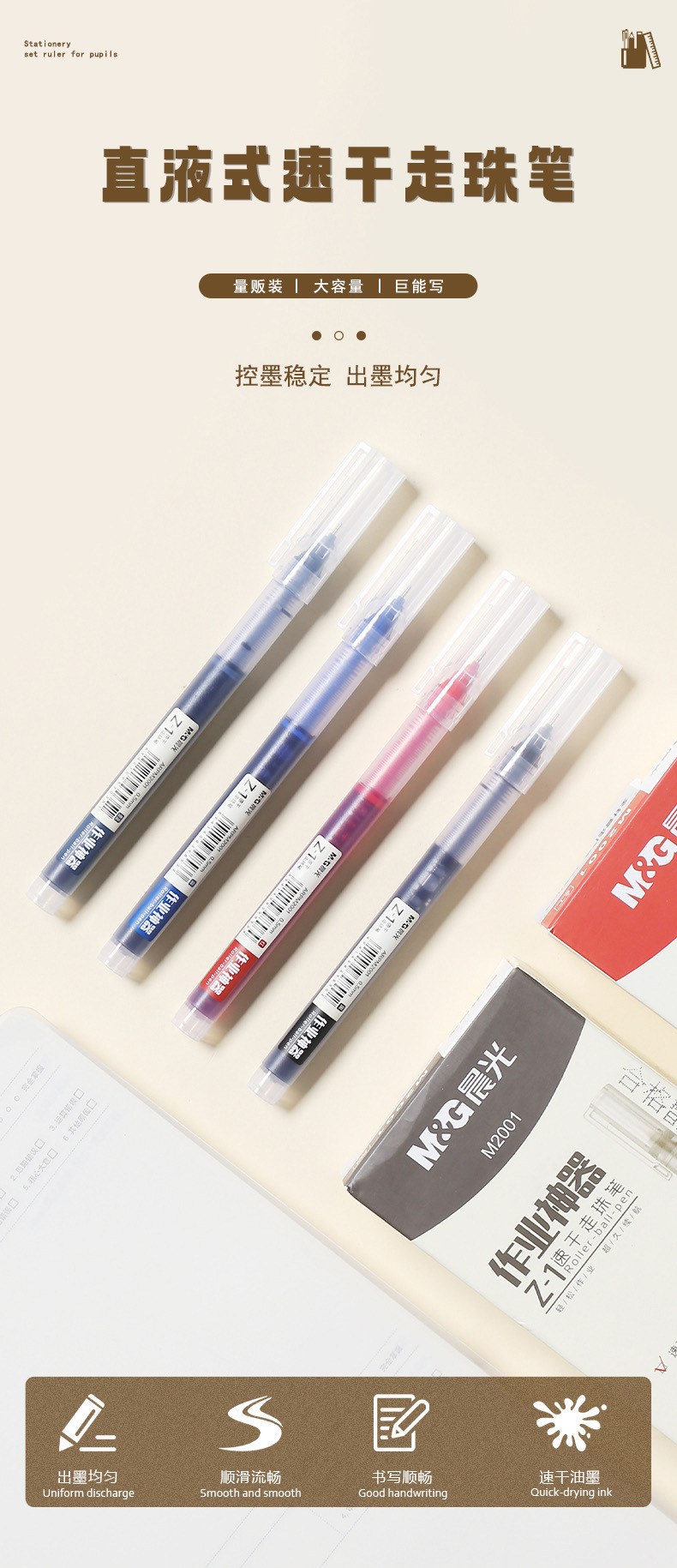 晨光作业神器大容量中性笔走珠笔一次性直液式笔速干签字笔M2001