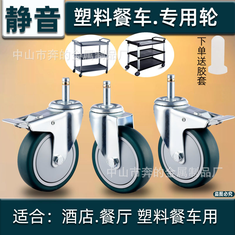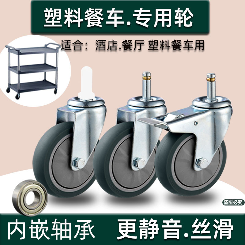 酒店塑料餐车静音轮子万向插杆脚轮4寸100×27餐车脚轮收碗车轮