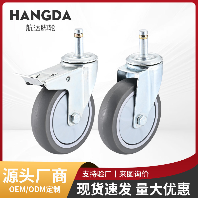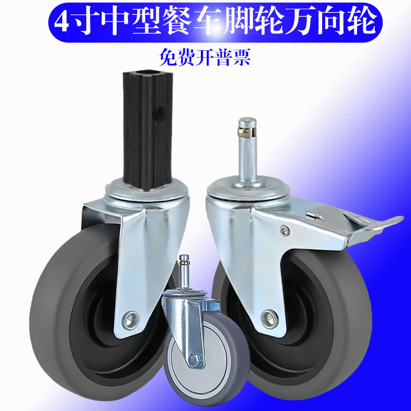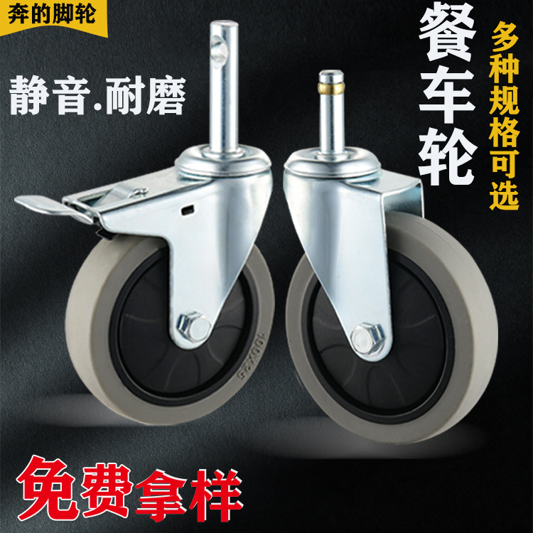 4寸餐车轮插杆活动 4寸餐车轮插杆刹车 万向轮购物车轮推车