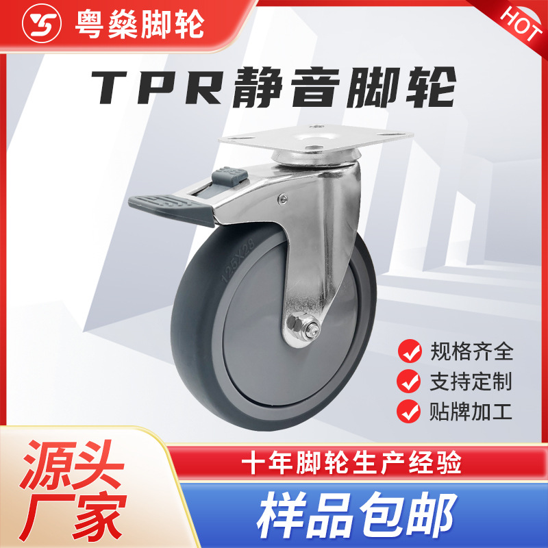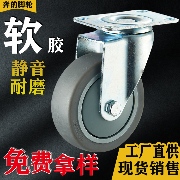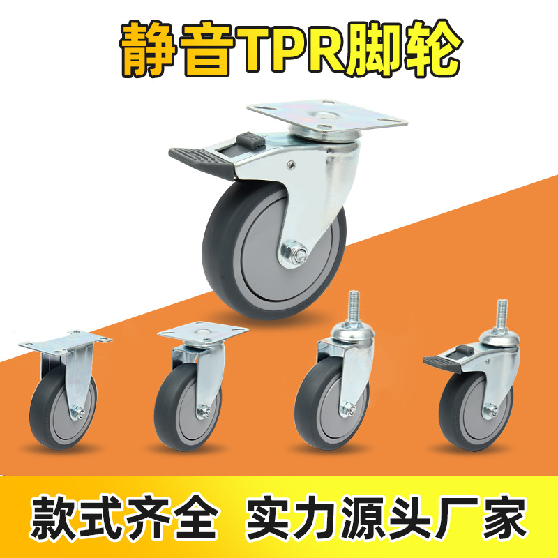 キャスターメーカーtpr静音3インチ4インチ5インチゴムホイールブレーキ付き静音ホイール工具キャビネットホイール万能ホイール