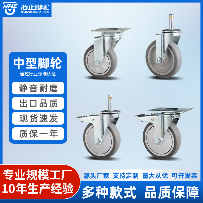 対外貿易TPRゴムユニバーサルホイールレバー中型キャスター3インチ4インチ5インチ食堂車手押し車ねじ静音メーカー