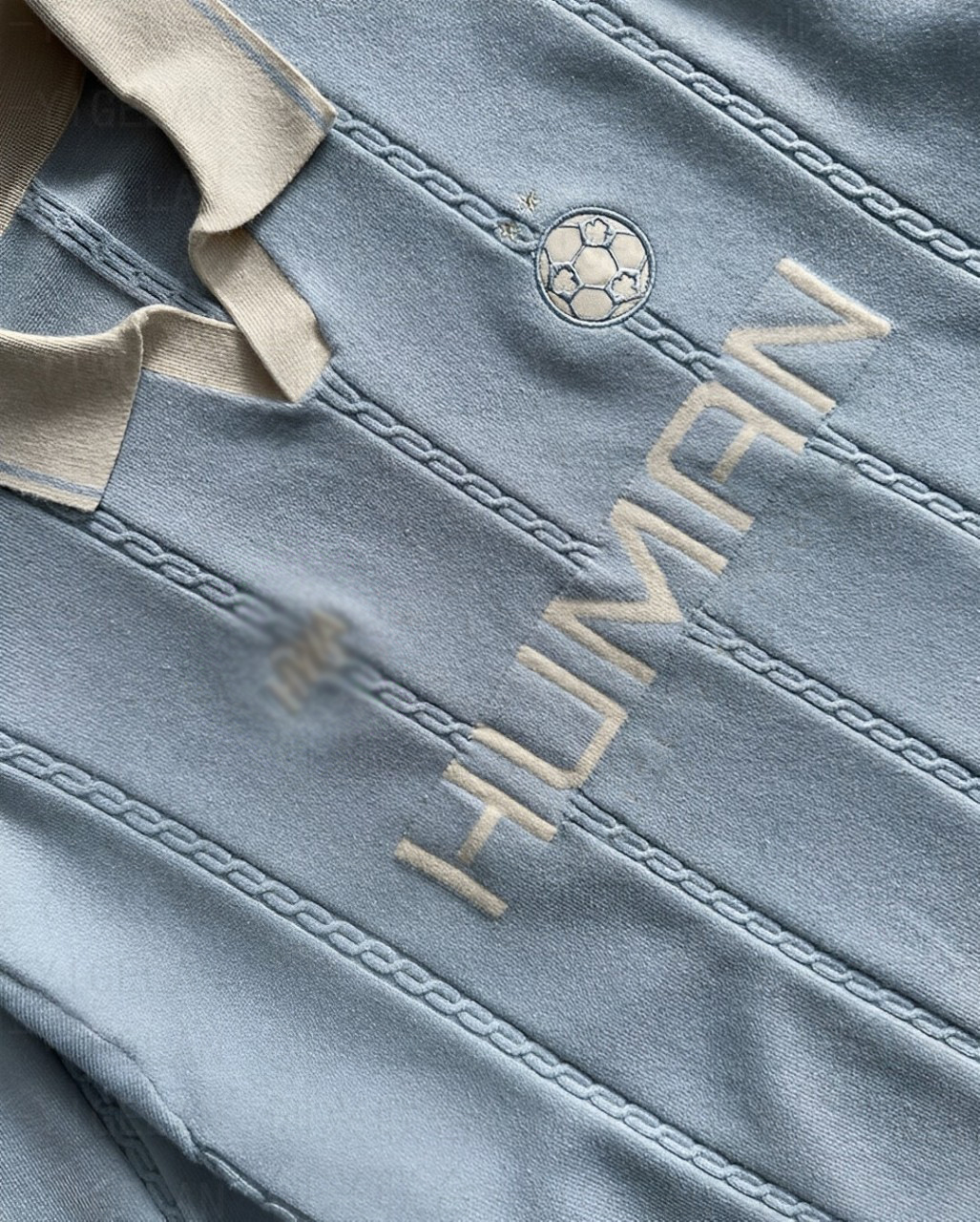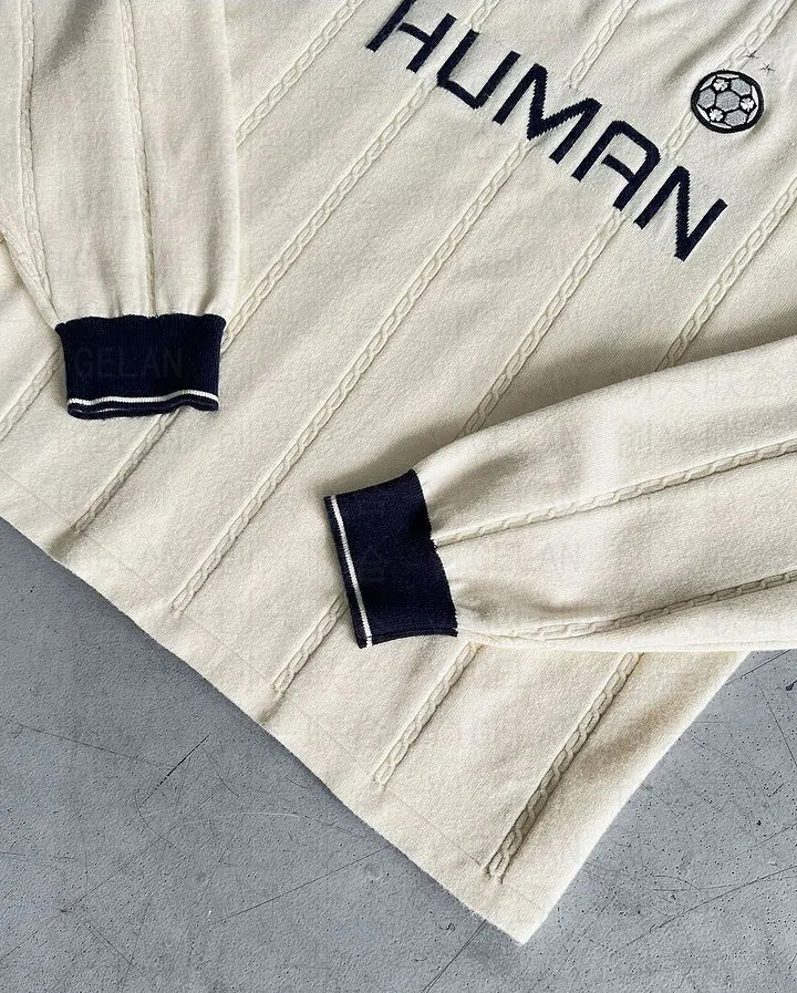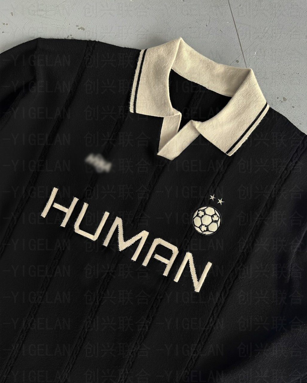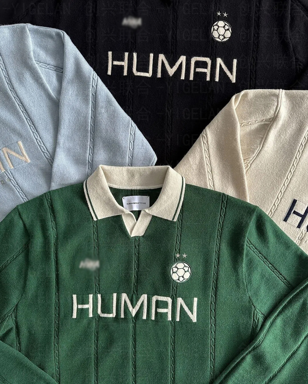 2025秋冬アメリカンレトロジャージ風縦縞ニットセーター男女兼用、レタープリントPOLO襟付きセーター