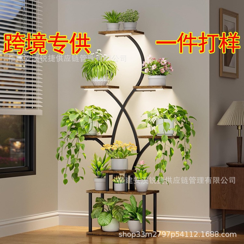 Amazon temu 植物スタンド屋内フラワースタンド緑の植物多層鉄リビングルームペンダント装飾植木鉢スタンドライト付き