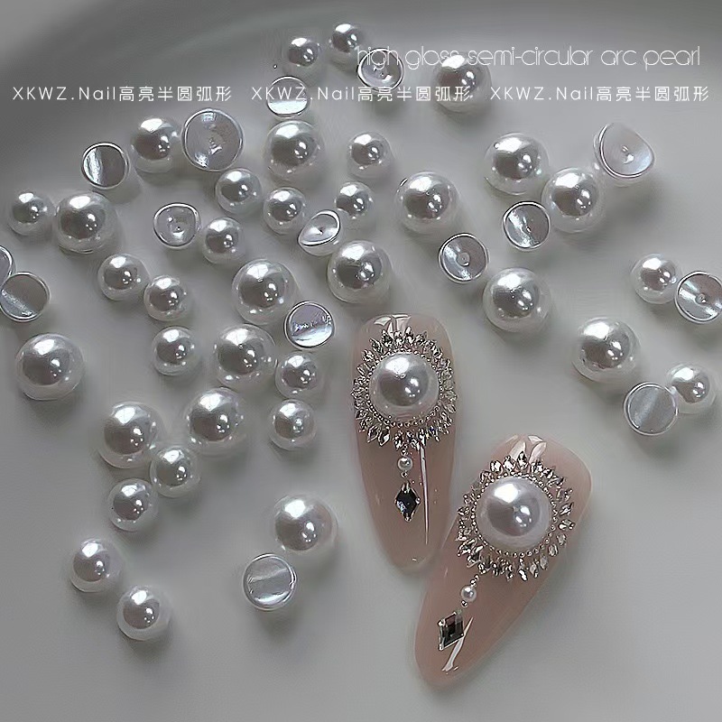 ネイルアートの凹面マントー真珠の日系ネイルアートによく使われるネイルアートは、皮をむいたり、色を落としたりしない半円真珠です