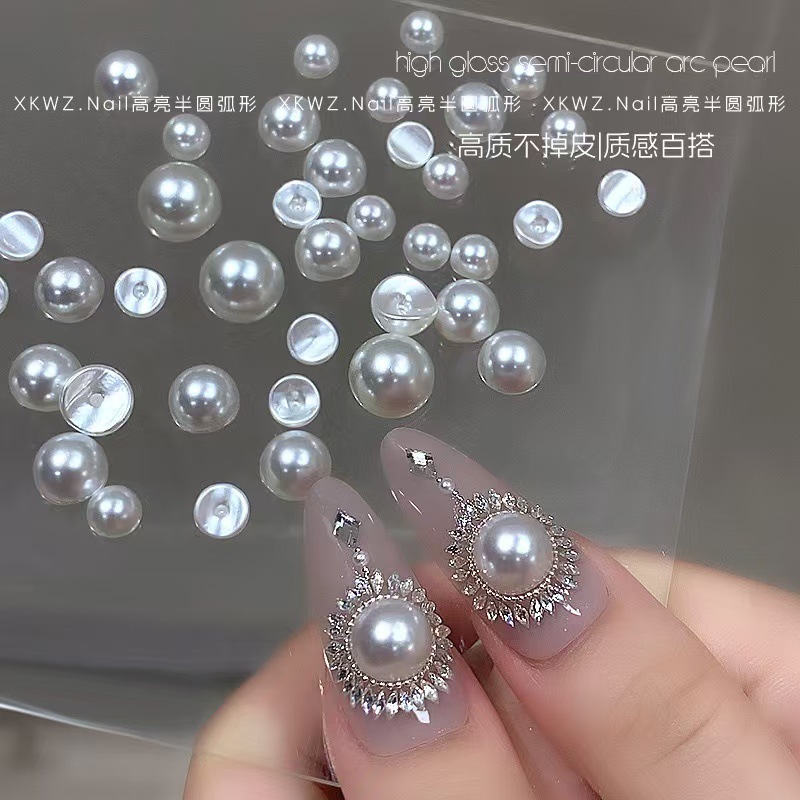 起爆凹面は皮をむいていない高品質真珠ネイルアクセサリーは甲の立体爪に合わせて真珠ドリル卸売りを飾る
