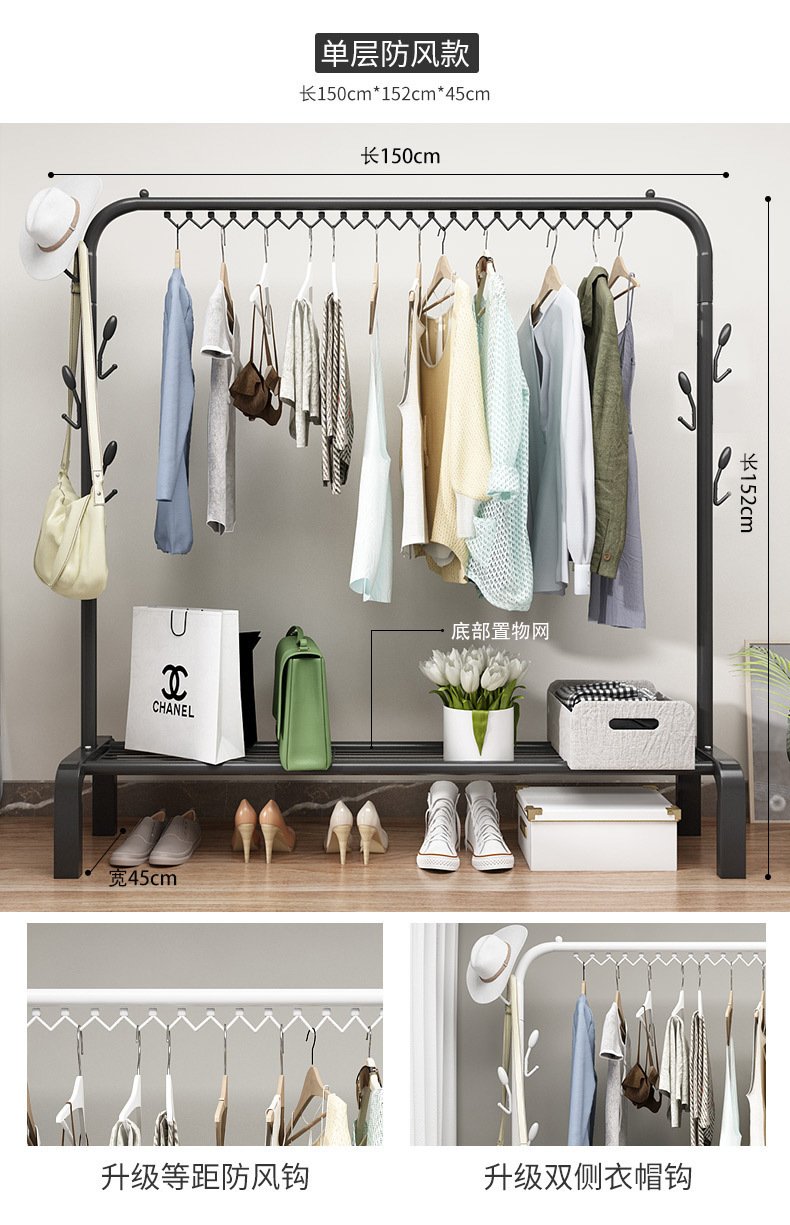 シンプルなクローゼットの組み立ては、クローゼットの家庭用収納キャビネット寮の床の寝室の床のハンガーを掛けます。