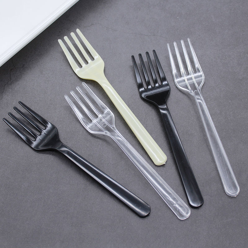 一次性小叉子透明叉子水果叉蛋糕叉黑色叉塑料班吉叉子甜品包邮