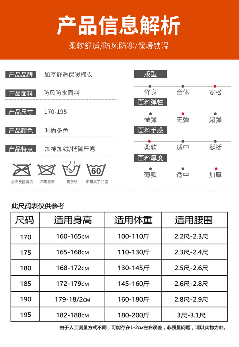 165/M【適合 50-55kg 】,170/L【適合 55-65kg 】,175/XL【適合 65-72.5kg 】,180/2X【適合 72.5-80kg 】,185/3X【適合 80-90kg 】,190/4X【適合 90-100kg 】