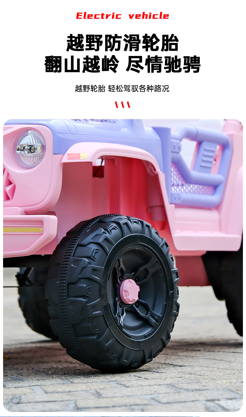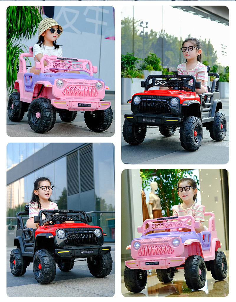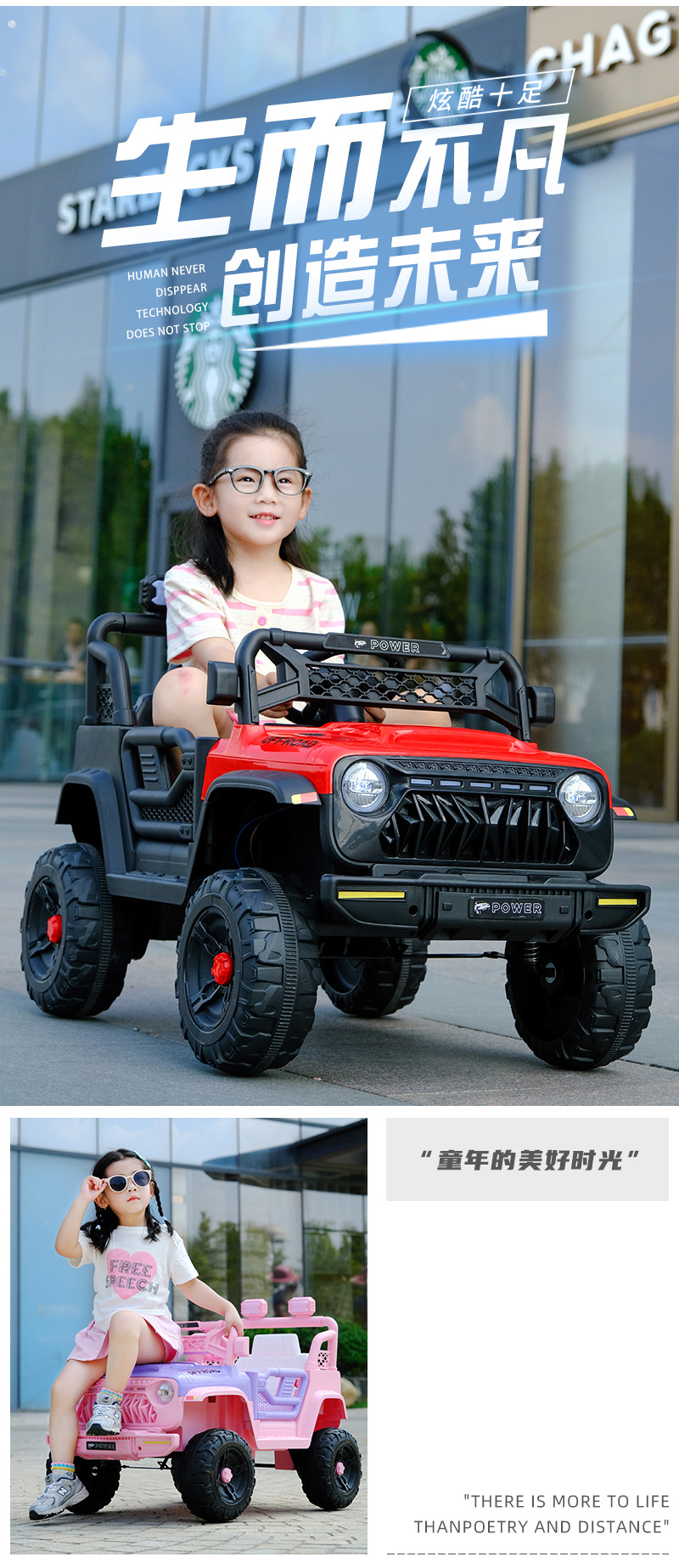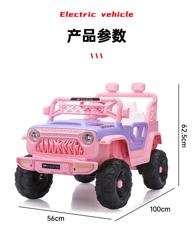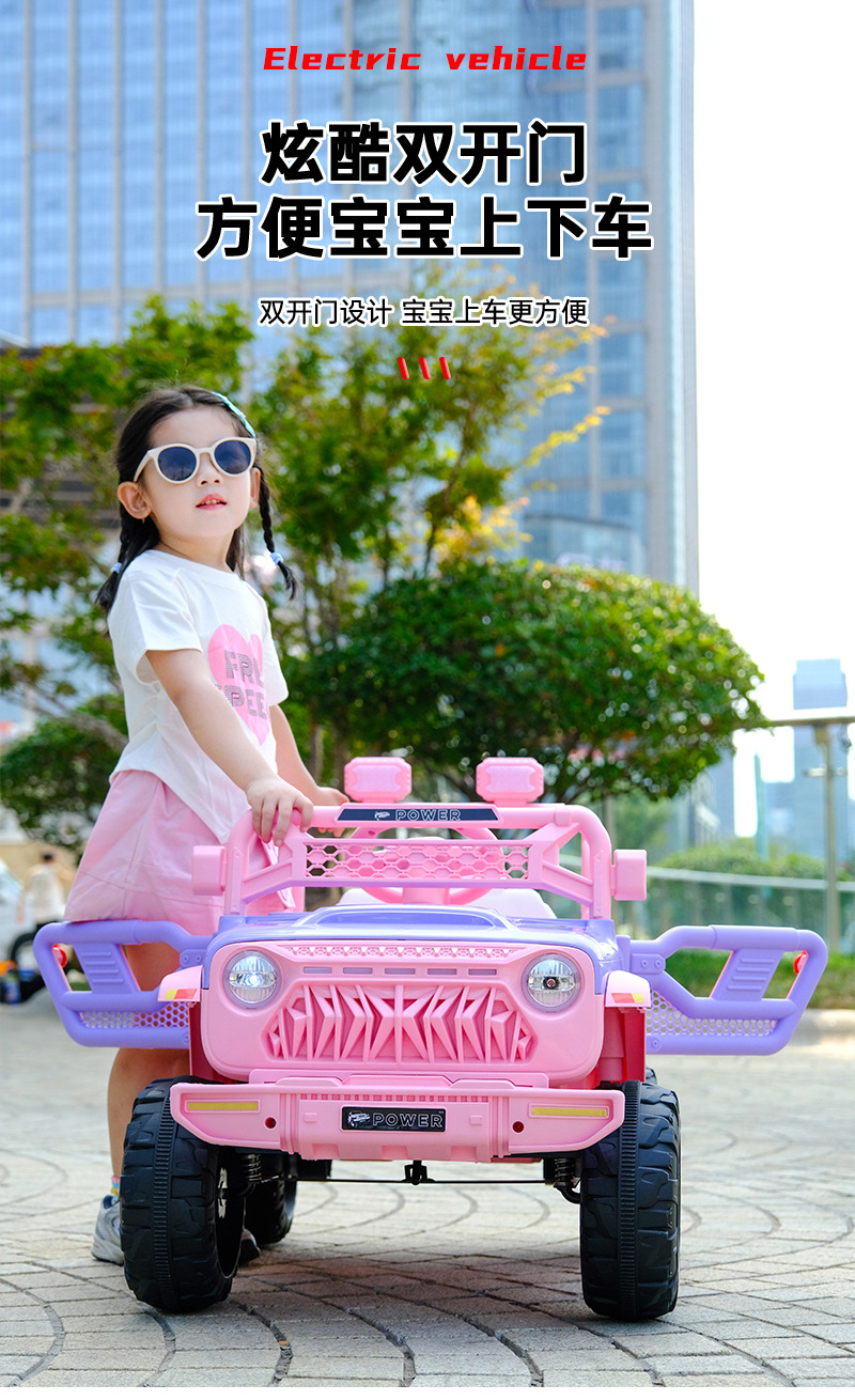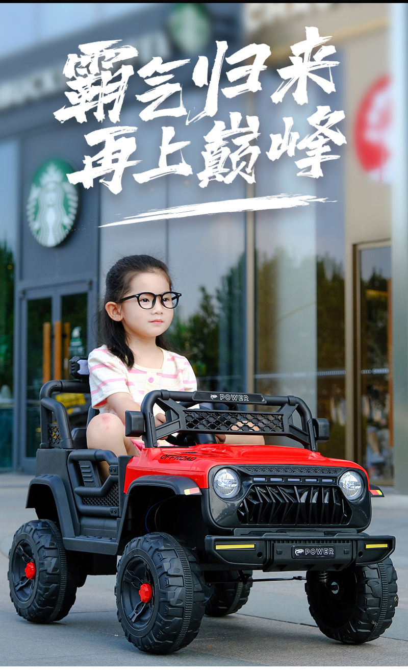 【一键开关】【电量显示】【音乐】【四轮避震】【多媒体音乐播放器】【手机APP】 【独立灯光开关】【电子摇摆】【USB插口】.4G一对一兰牙遥控【一键安装多功能方向盘】【赛克达12V4.5电瓶,双驱380电机】