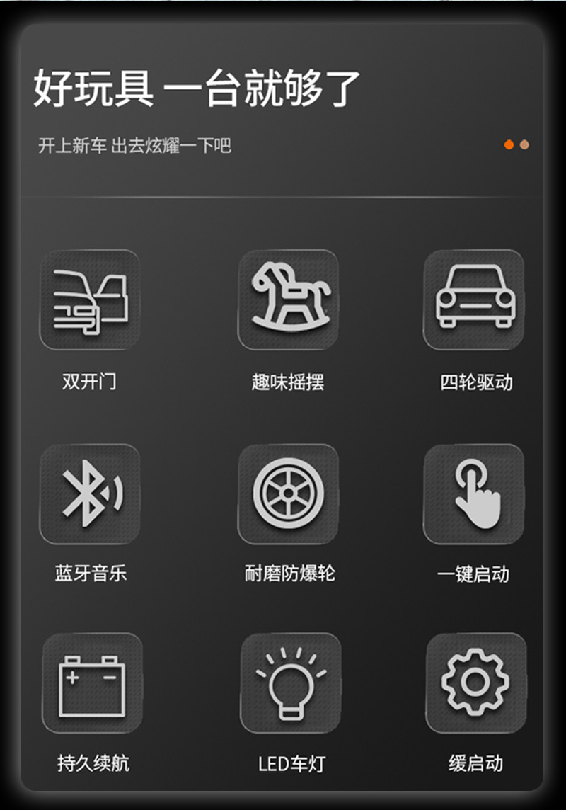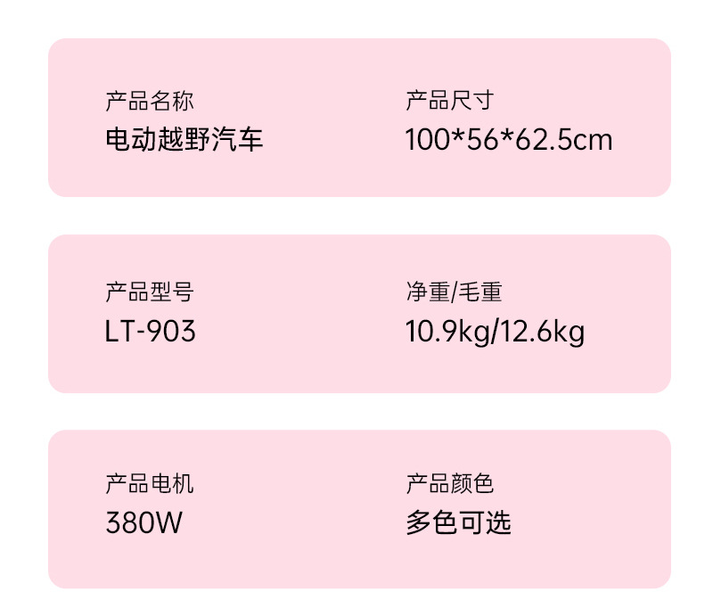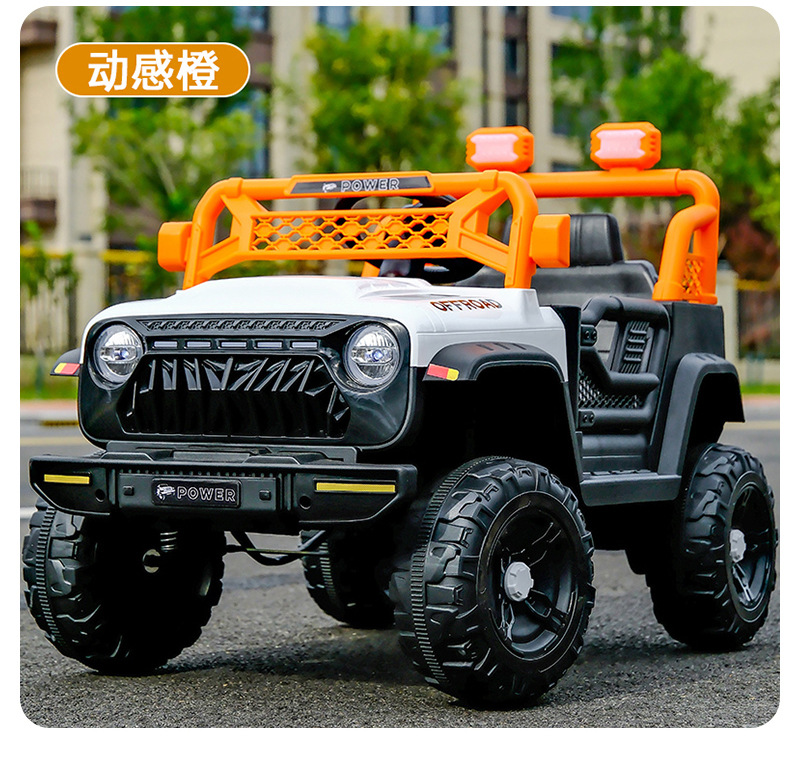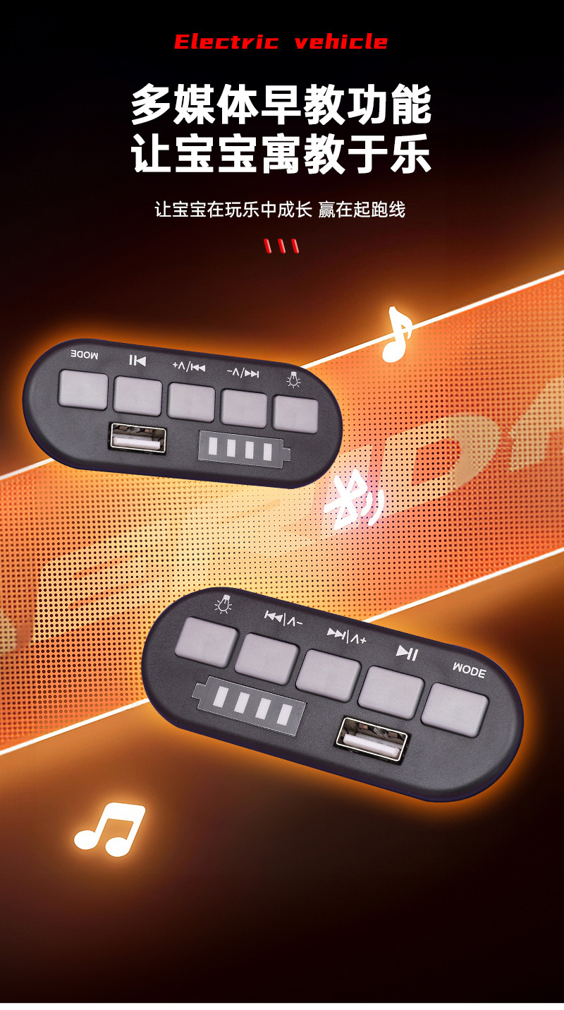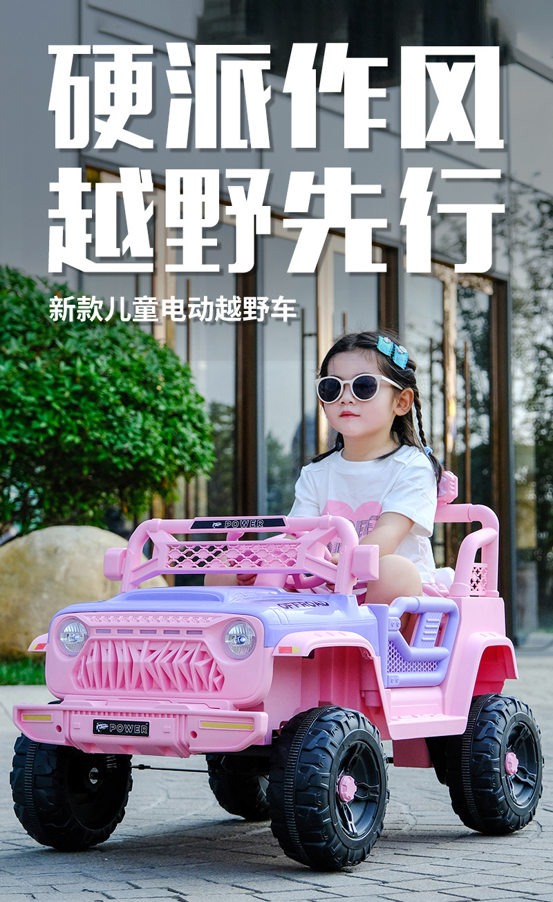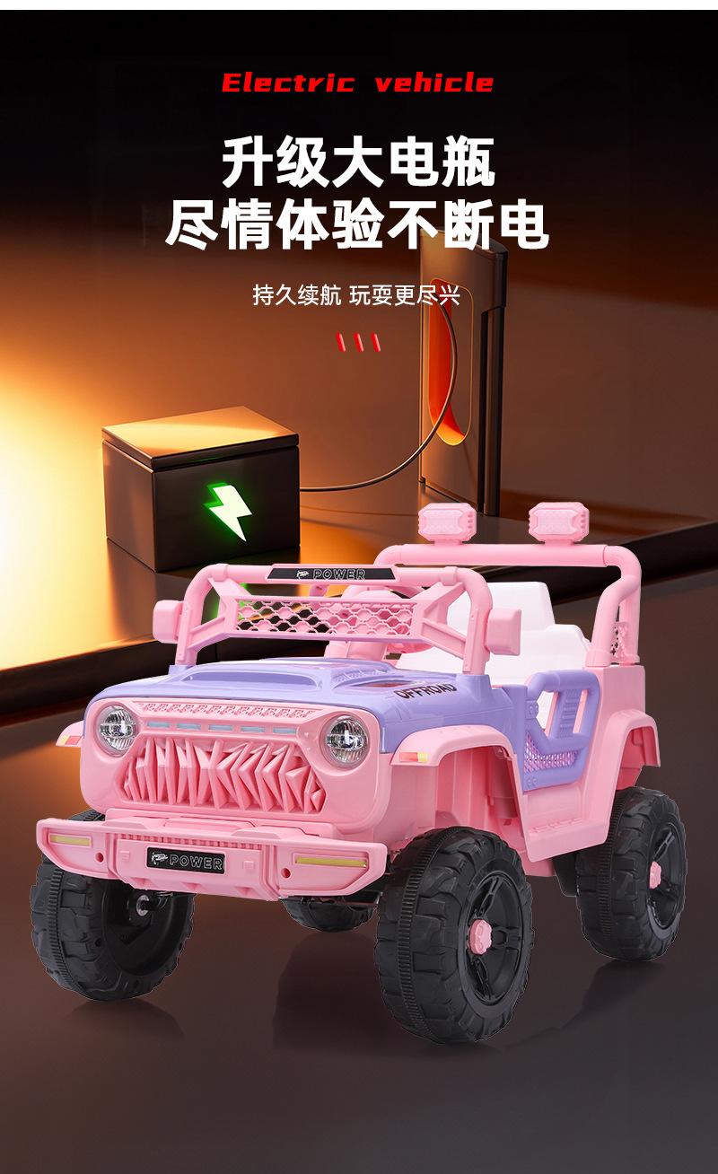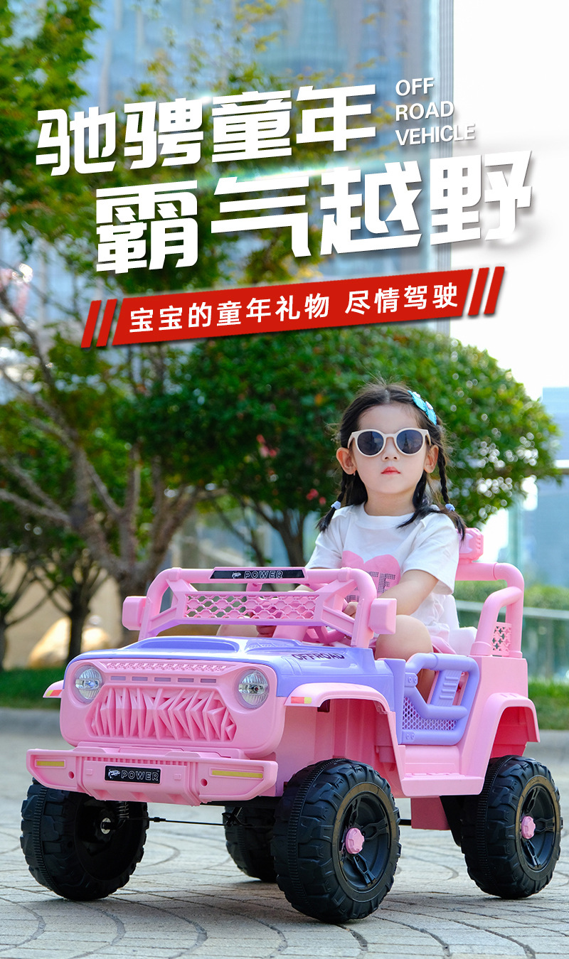 【一键开关】【电量显示】【音乐】【四轮避震】【多媒体音乐播放器】【手机APP】 【独立灯光开关】【电子摇摆】【USB插口】.4G一对一兰牙遥控【一键安装多功能方向盘】【赛克达12V4.5电瓶,双驱380电机】