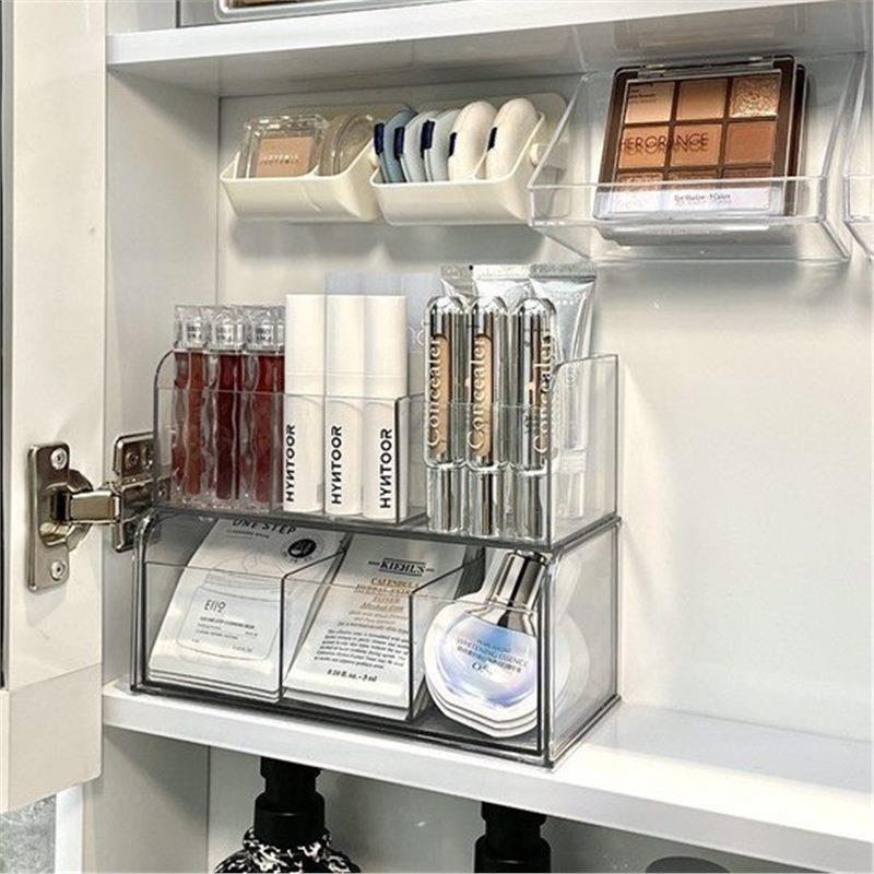 洗手间镜柜收纳盒奶油风浴室柜柜子隔板卫生间内抽屉化妆品置