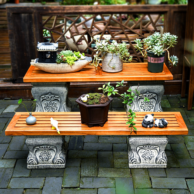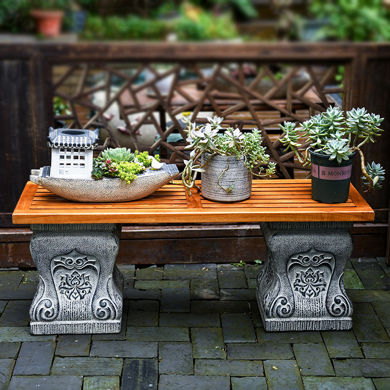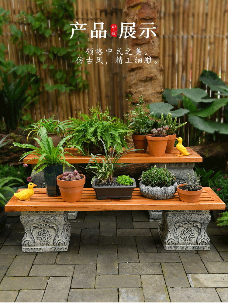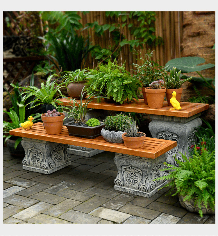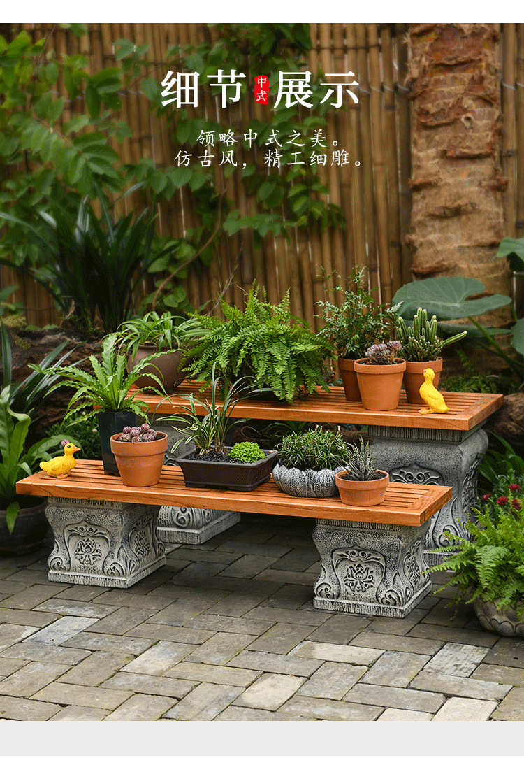 中国式の庭の人工石の切り株の土台の庭の花園の装飾は創意のベランダの実木の長い置物の花の棚を配置します。