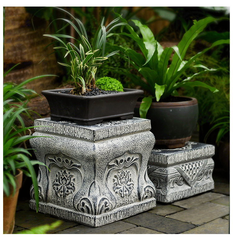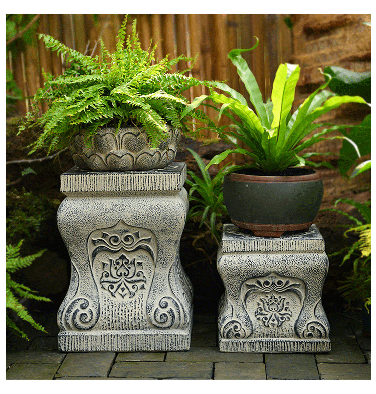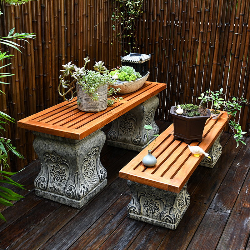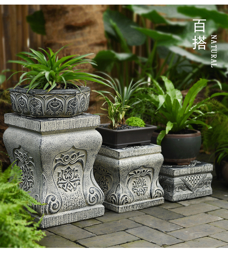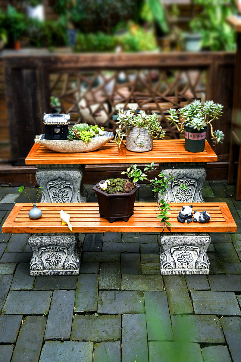 中国式の庭の人工石の切り株の土台の庭の花園の装飾は創意のベランダの実木の長い置物の花の棚を配置します。