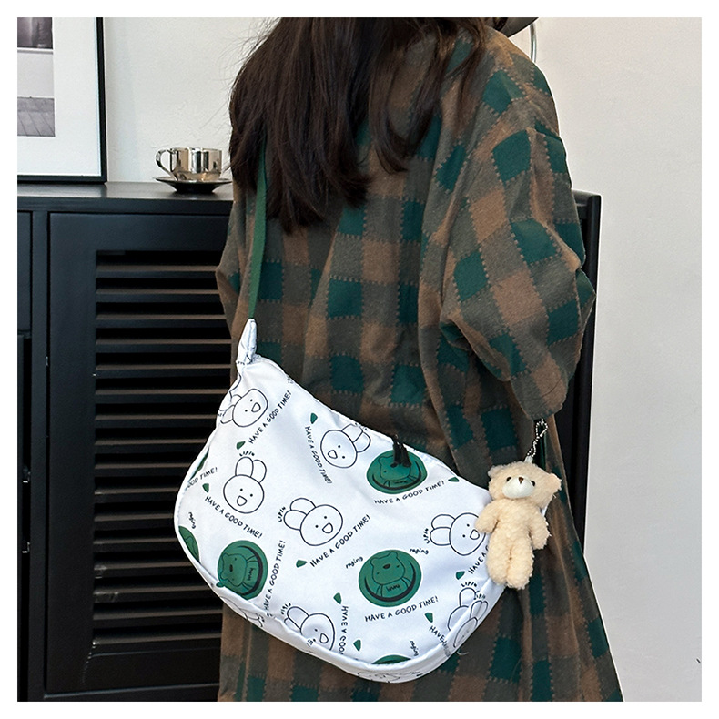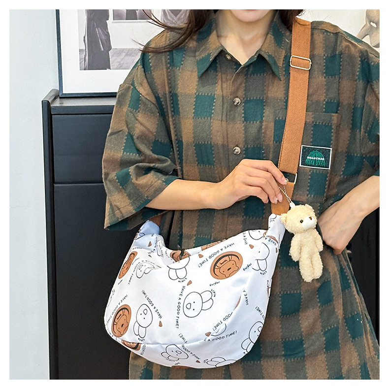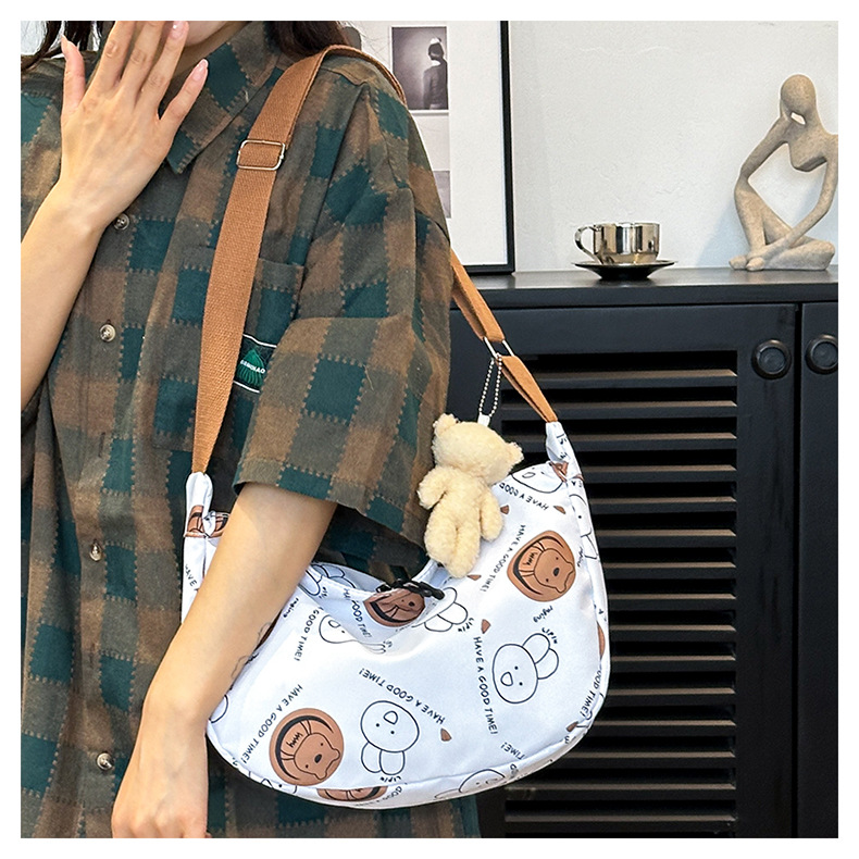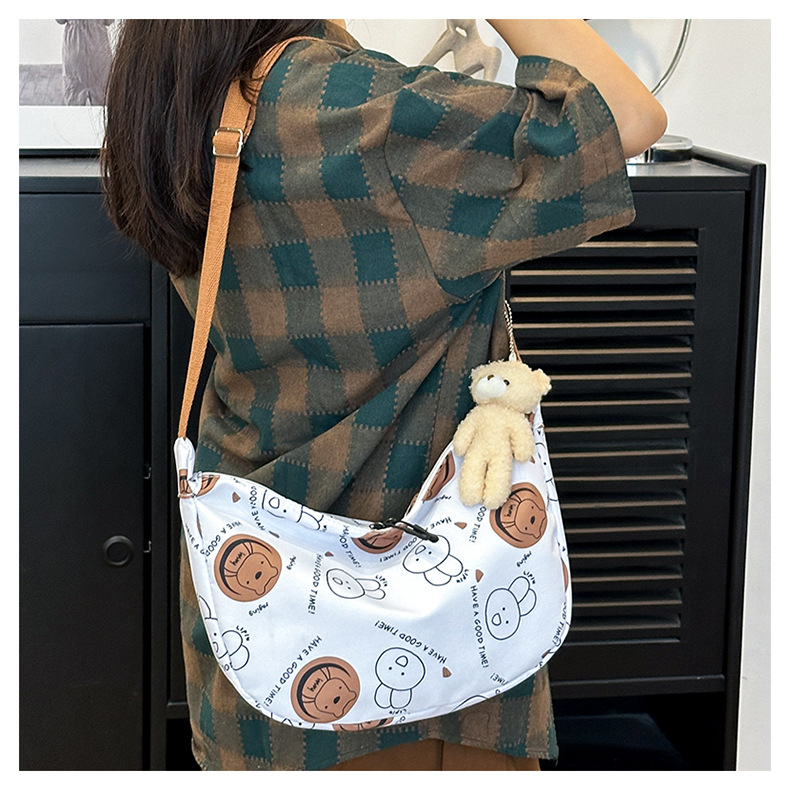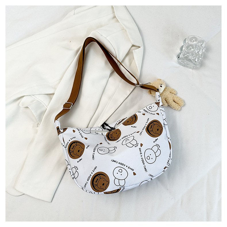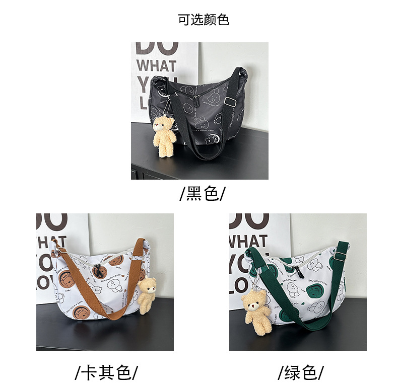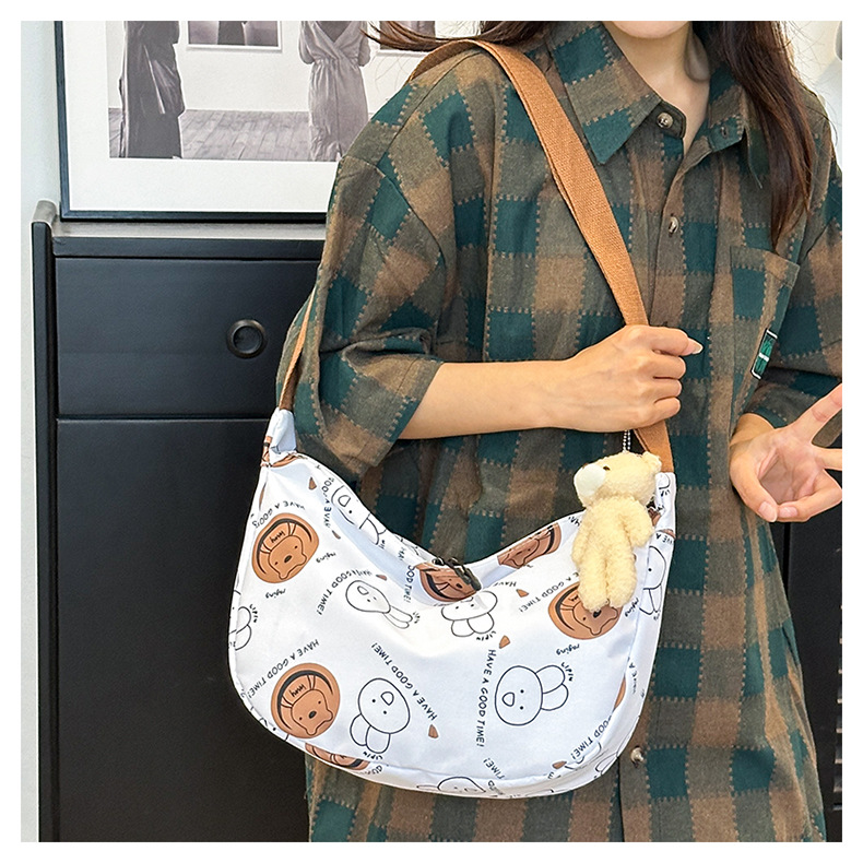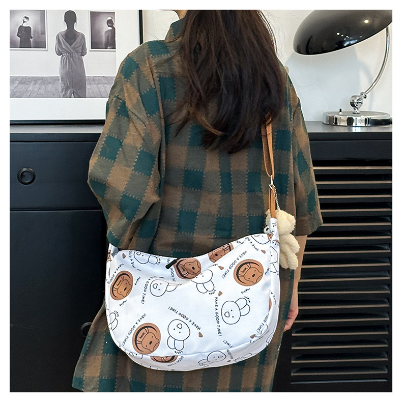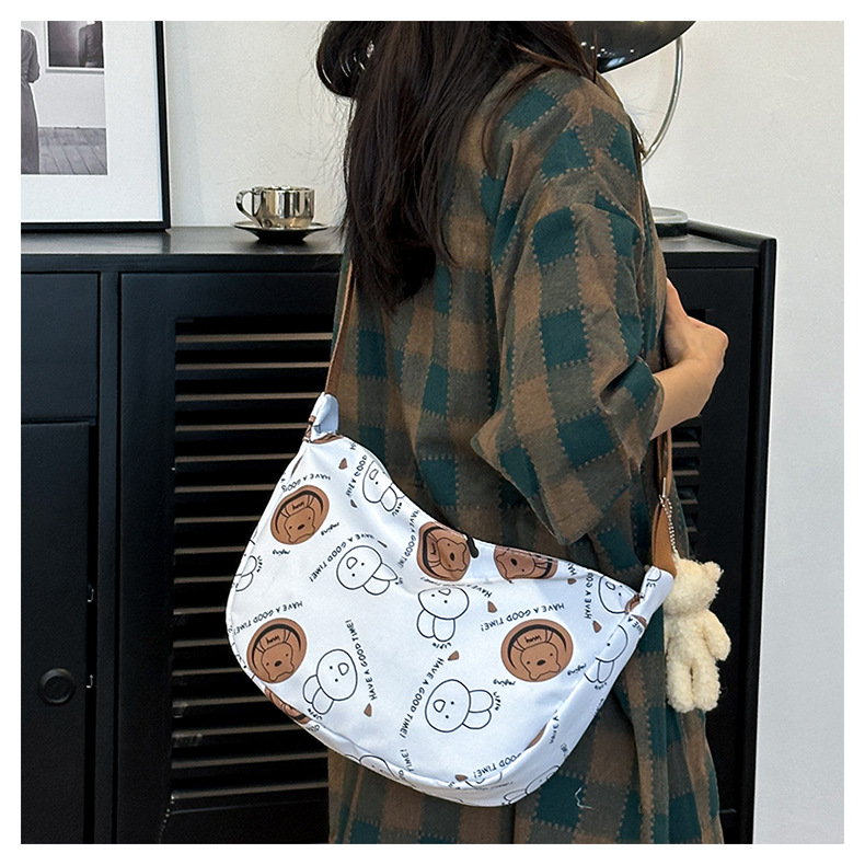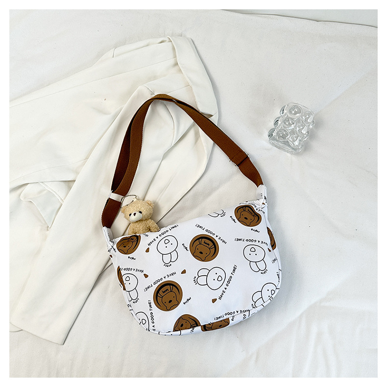 2024帆布かわいいベアープリント大容量餃子バッグシングル肩斜め掛け女性バッグトレンドストラップなし