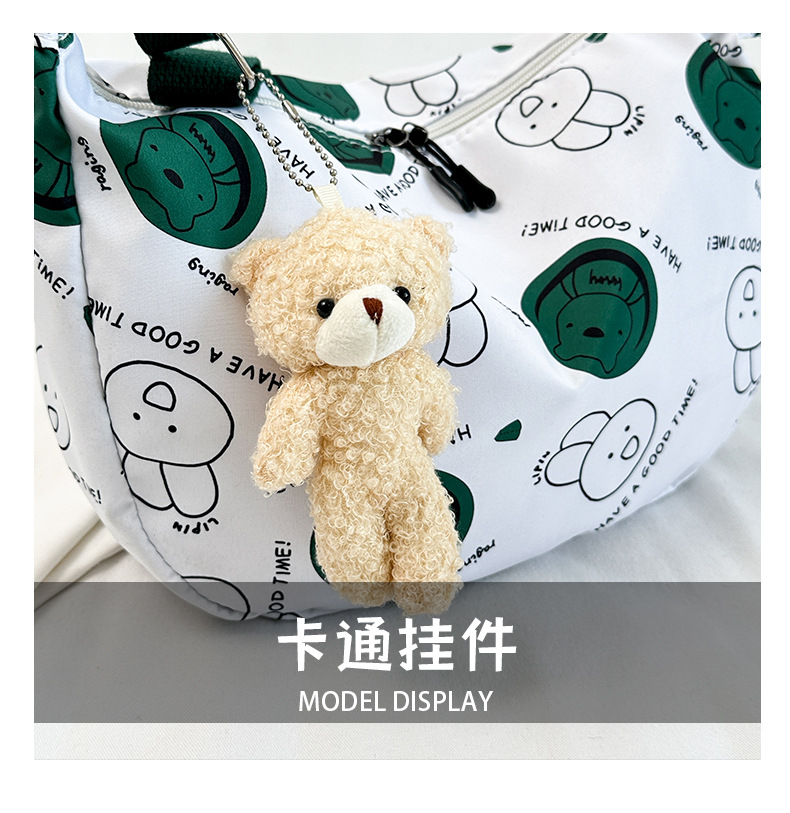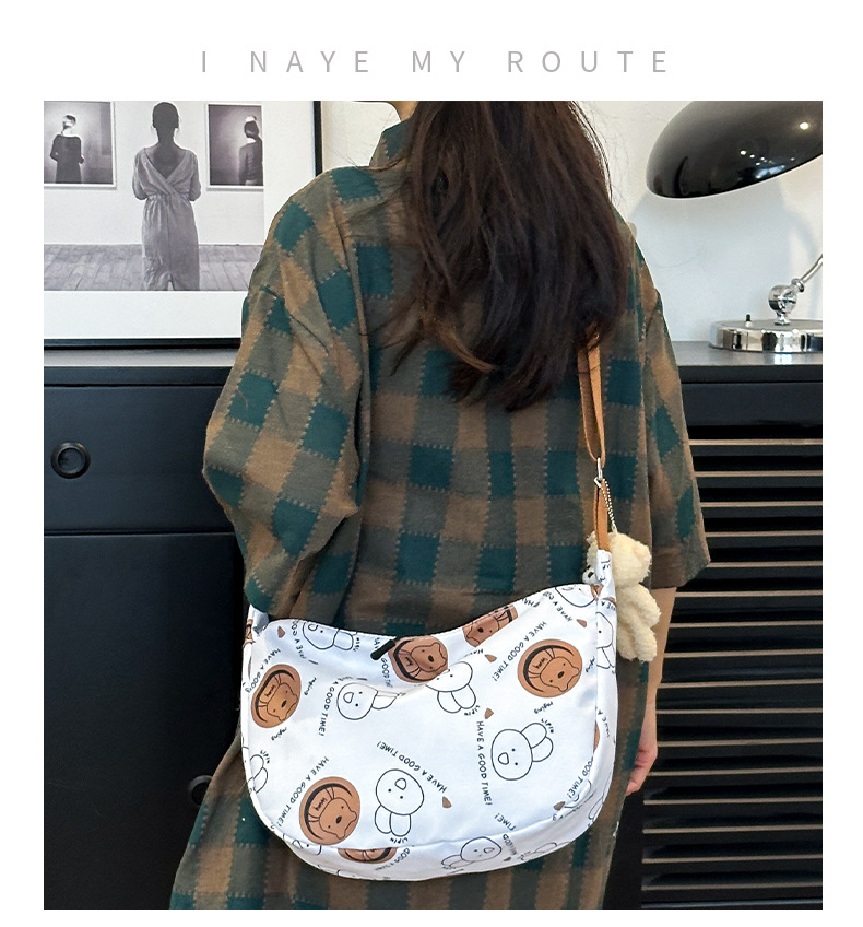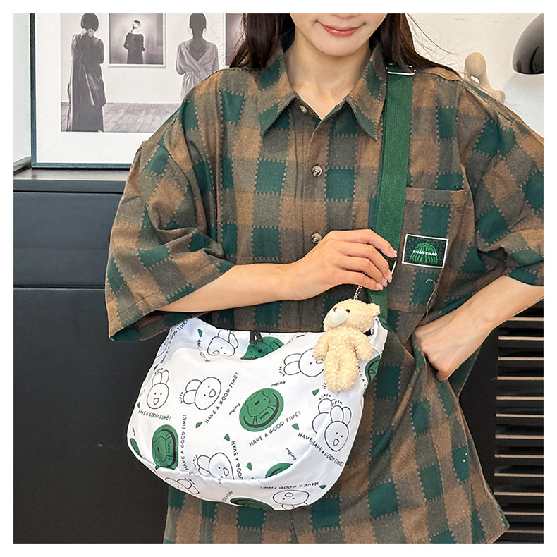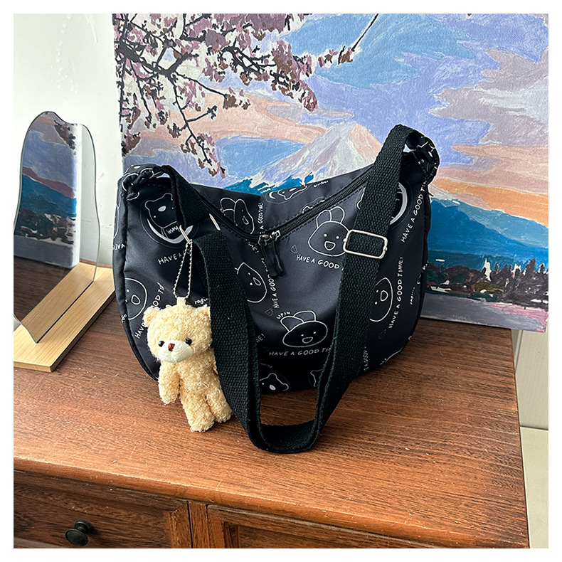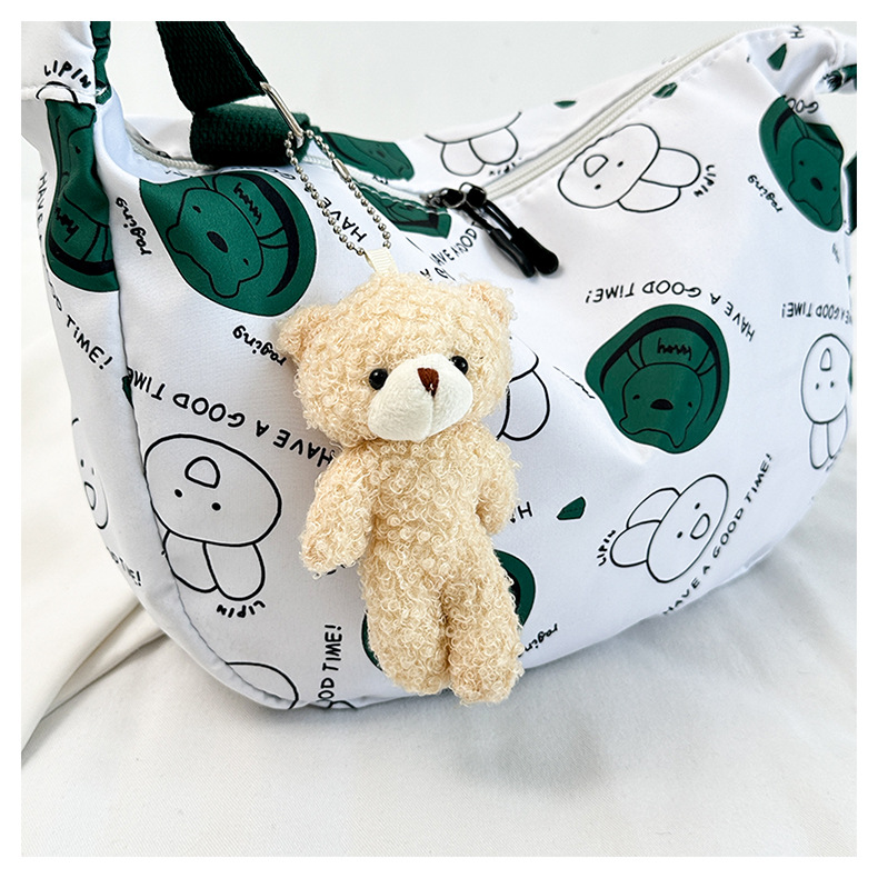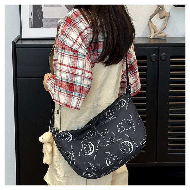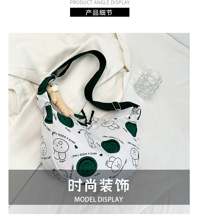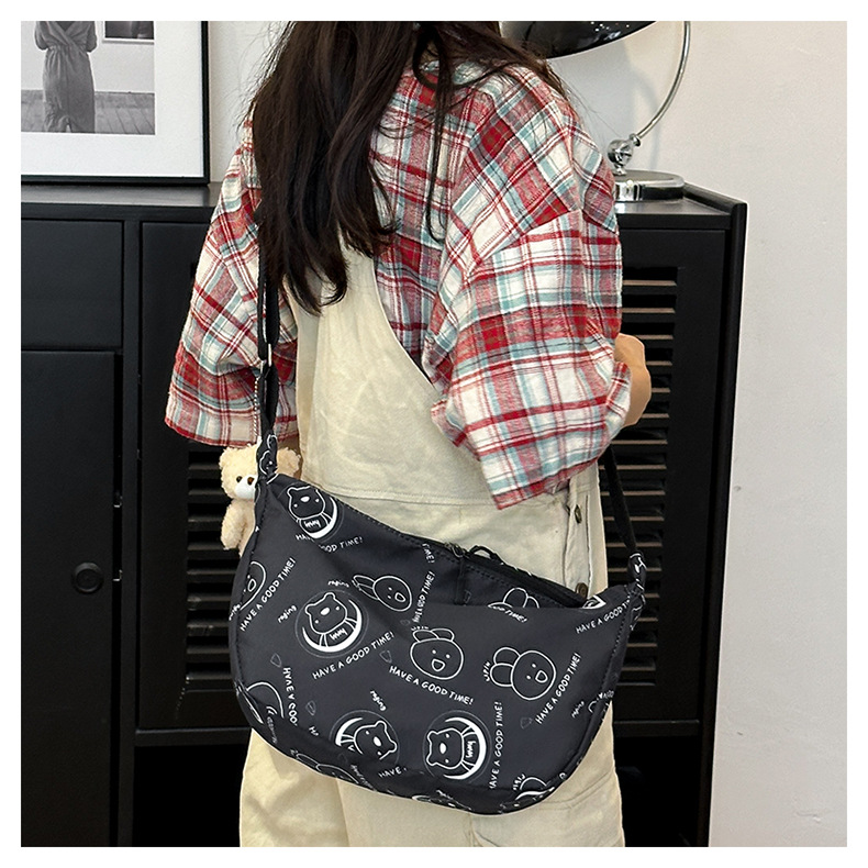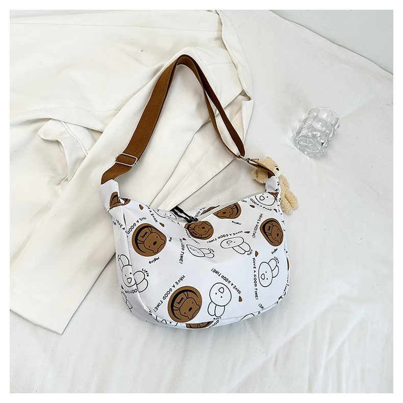 2024帆布かわいいベアープリント大容量餃子バッグシングル肩斜め掛け女性バッグトレンドストラップなし