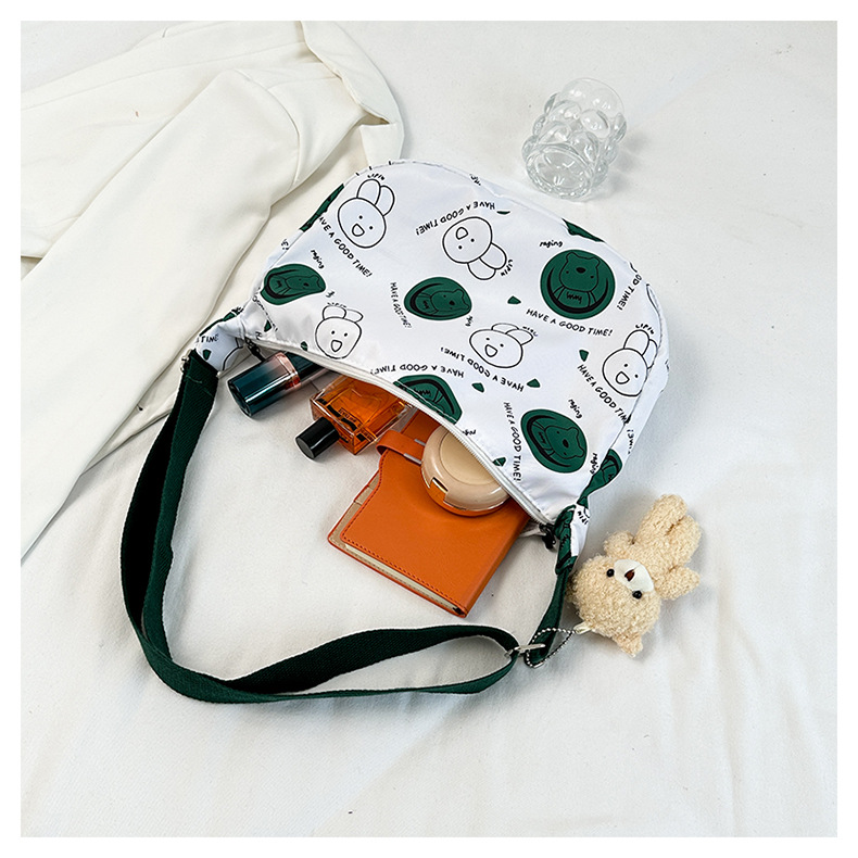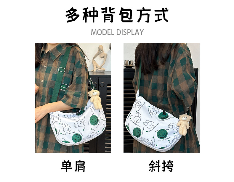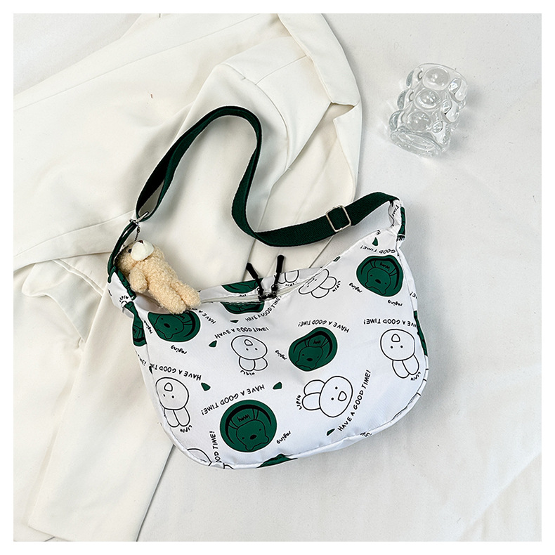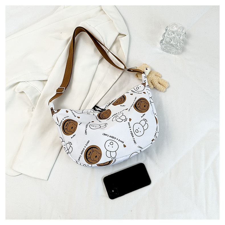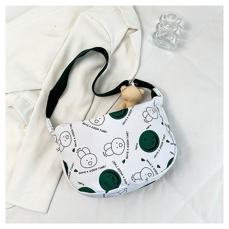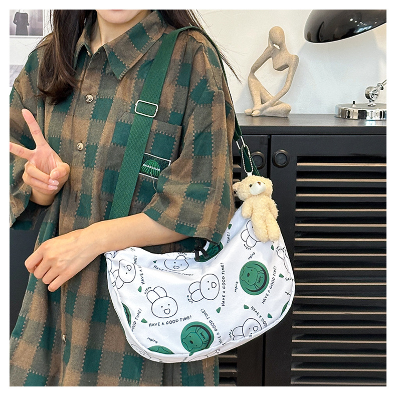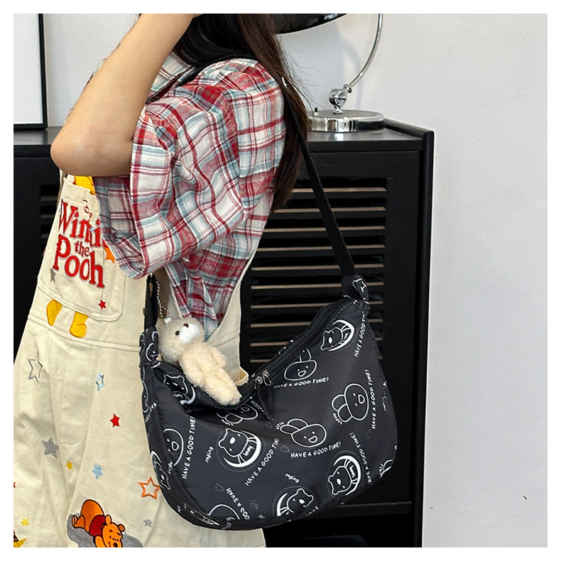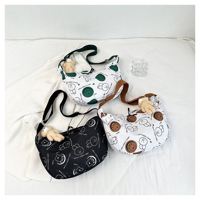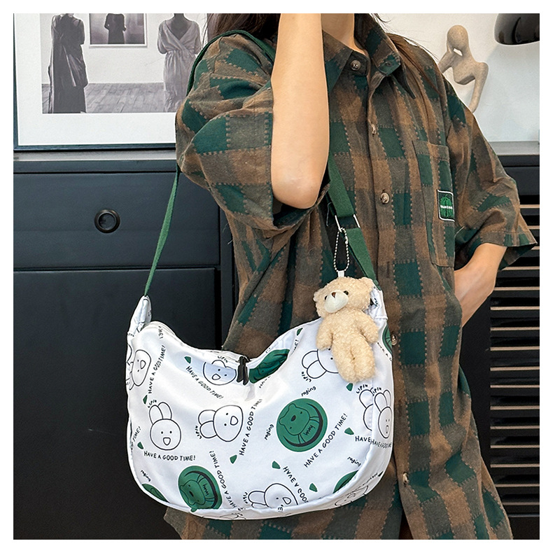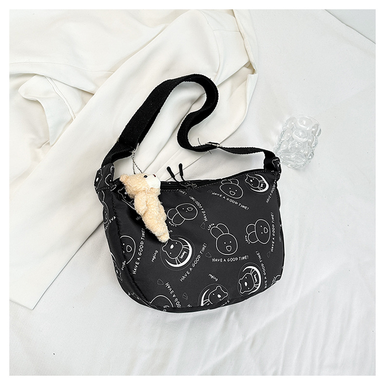 2024帆布かわいいベアープリント大容量餃子バッグシングル肩斜め掛け女性バッグトレンドストラップなし