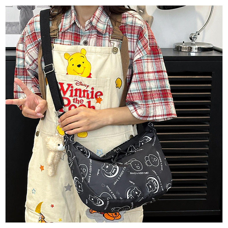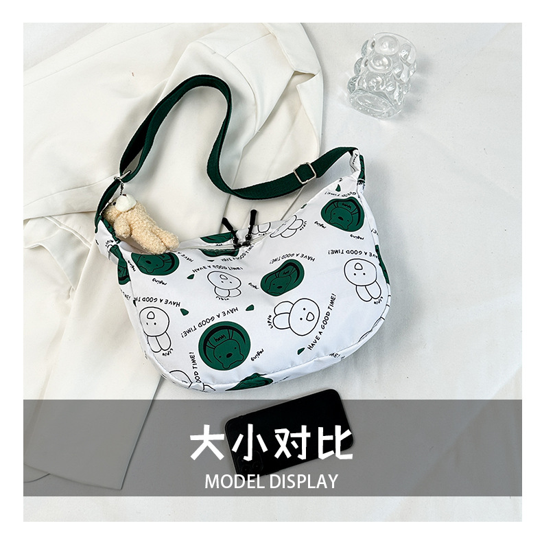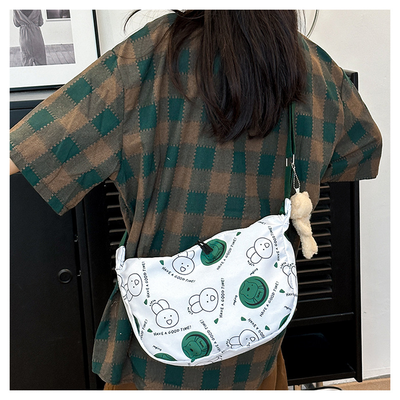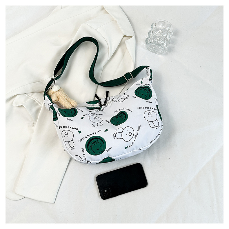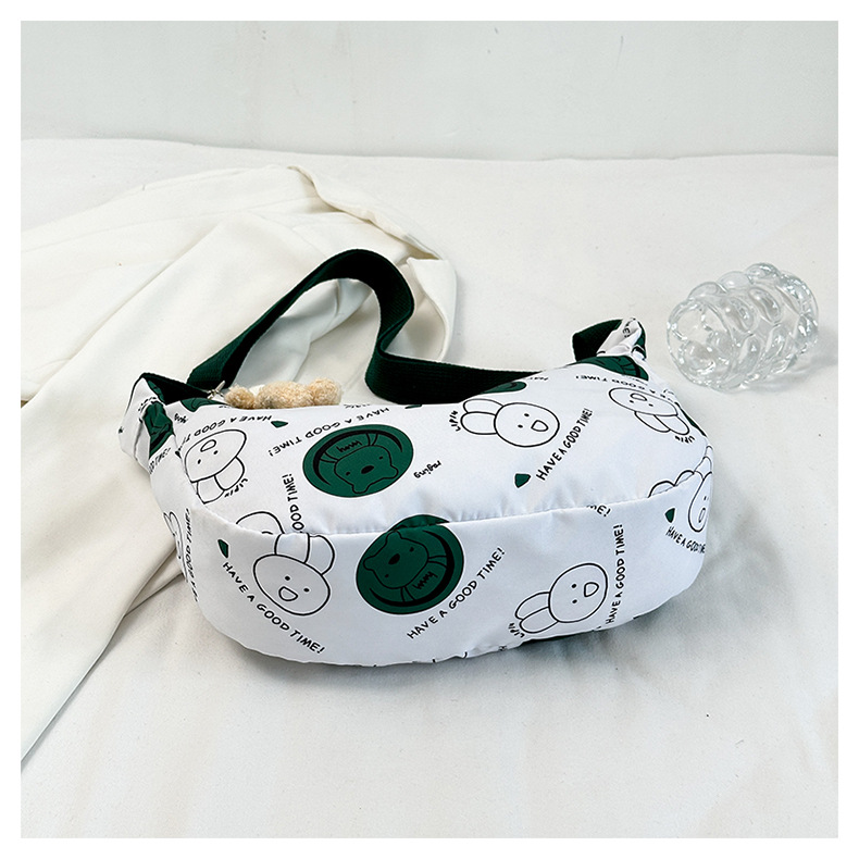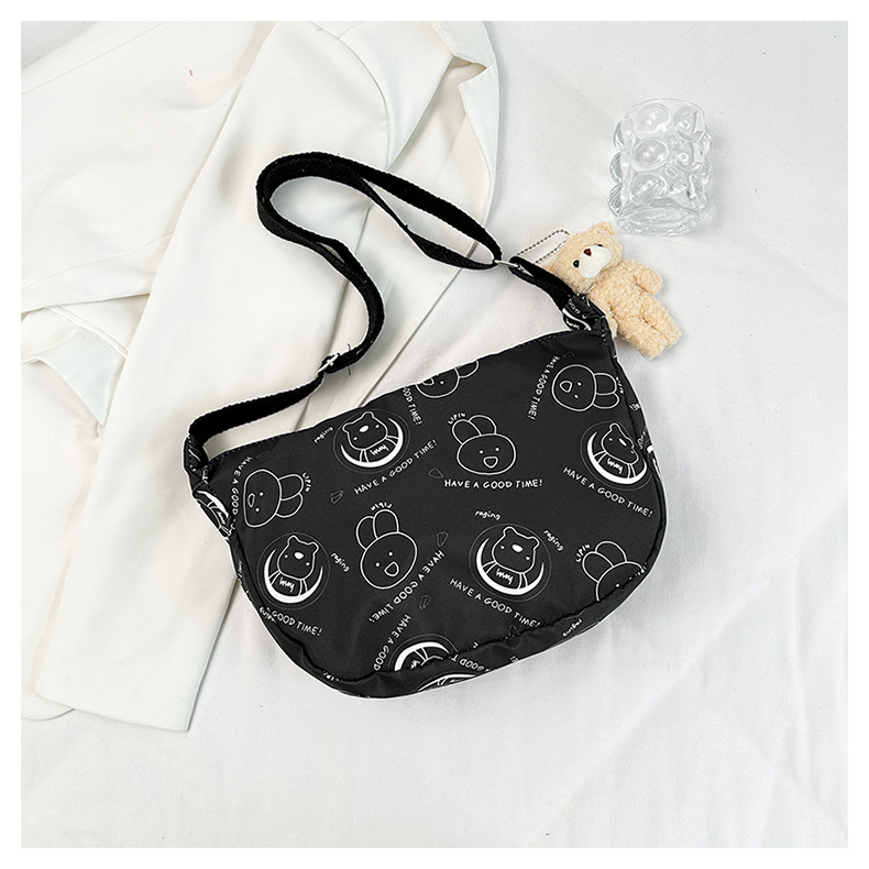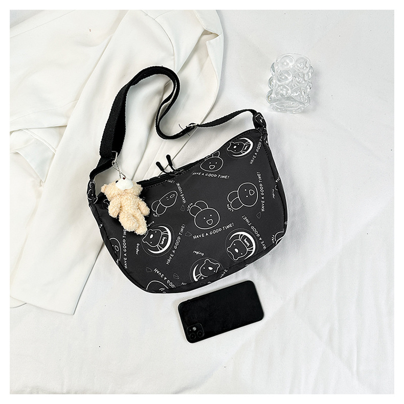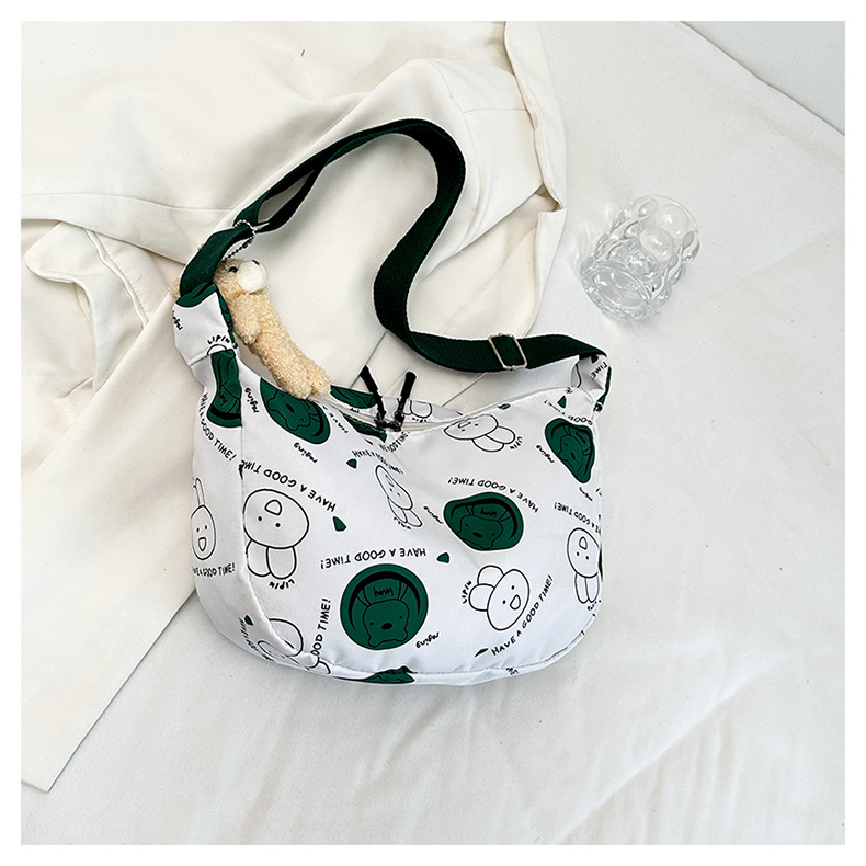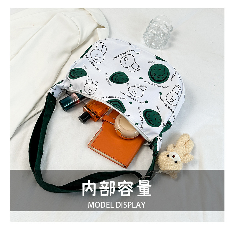 2024帆布かわいいベアープリント大容量餃子バッグシングル肩斜め掛け女性バッグトレンドストラップなし