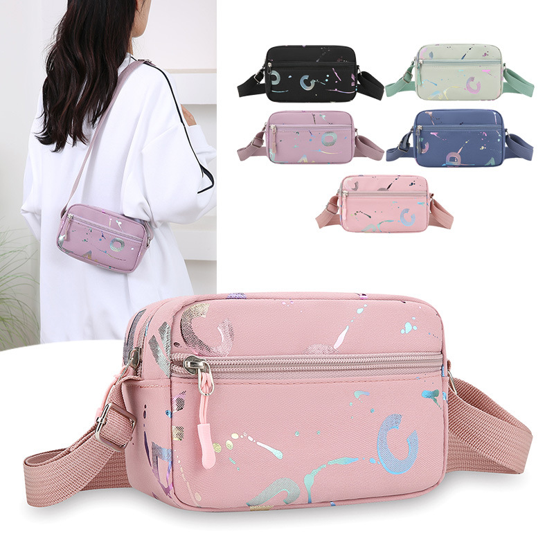 レディース クロスボディバッグ 軽量 防水 ナイロン製 小型バッグ 女性用バッグ 箔押し文字入り スポーツ携帯電話バッグ カジュアルショルダーバッグ