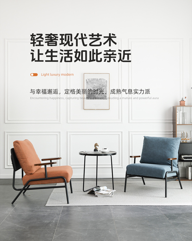 シングルソファー鉄芸シンプルなリビングルームのベランダの寝室は科学技術の布を接待します。