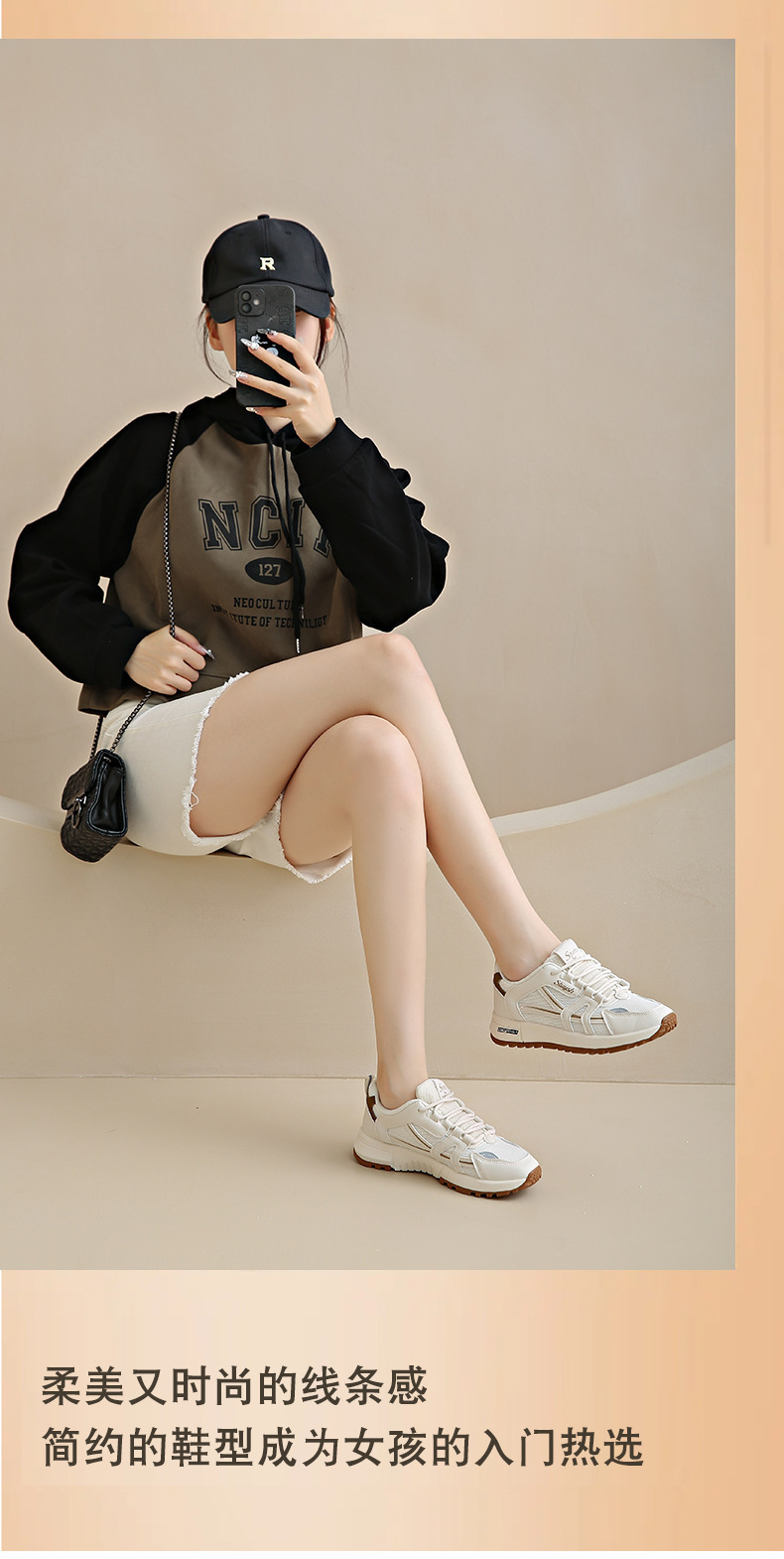 縫製ライン,浅い口,クロスストラップ,カラーブロック
