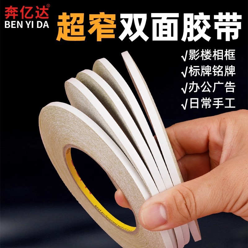 超窄细高粘度双面胶带5mm宽儿童手工小学生专用diy黄色棉纸胶纸
