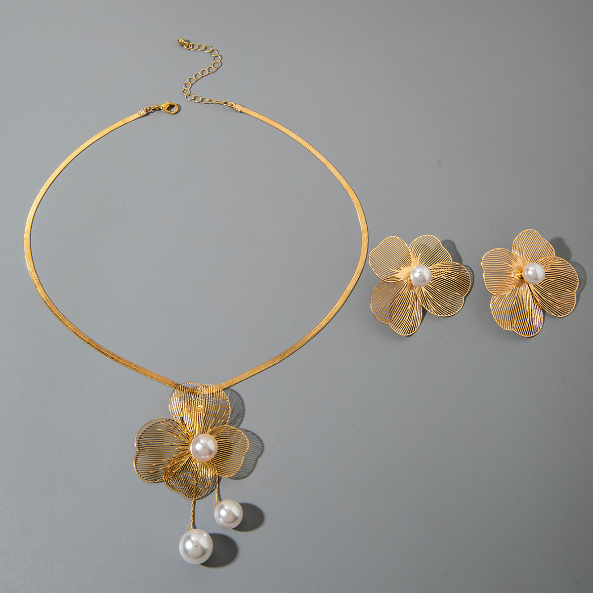 欧美跨境花朵珍珠项链百搭高级感女士首饰套装个性小众时尚锁骨链